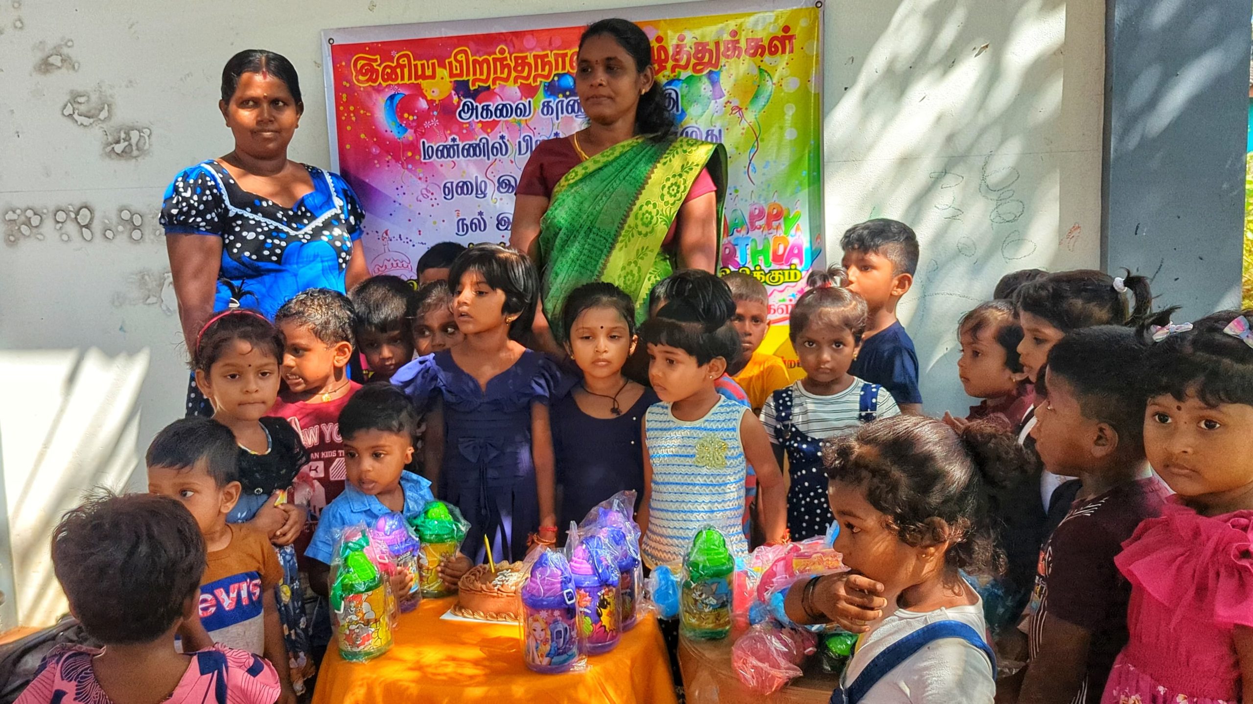 முதல் நிகழ்வாக மாணவ சிறார்களும், பெற்றோர்கள் கலந்து கொண்டு சுவிஸ்லாந்தில் வசிக்கும் செல்வி அவர்களின் சார்பாக கேக் வெட்டி பிறந்த நாள் பாட்டுப்பாடி மகிழ்ச்சியாக கொண்டாடப்பட்டது.