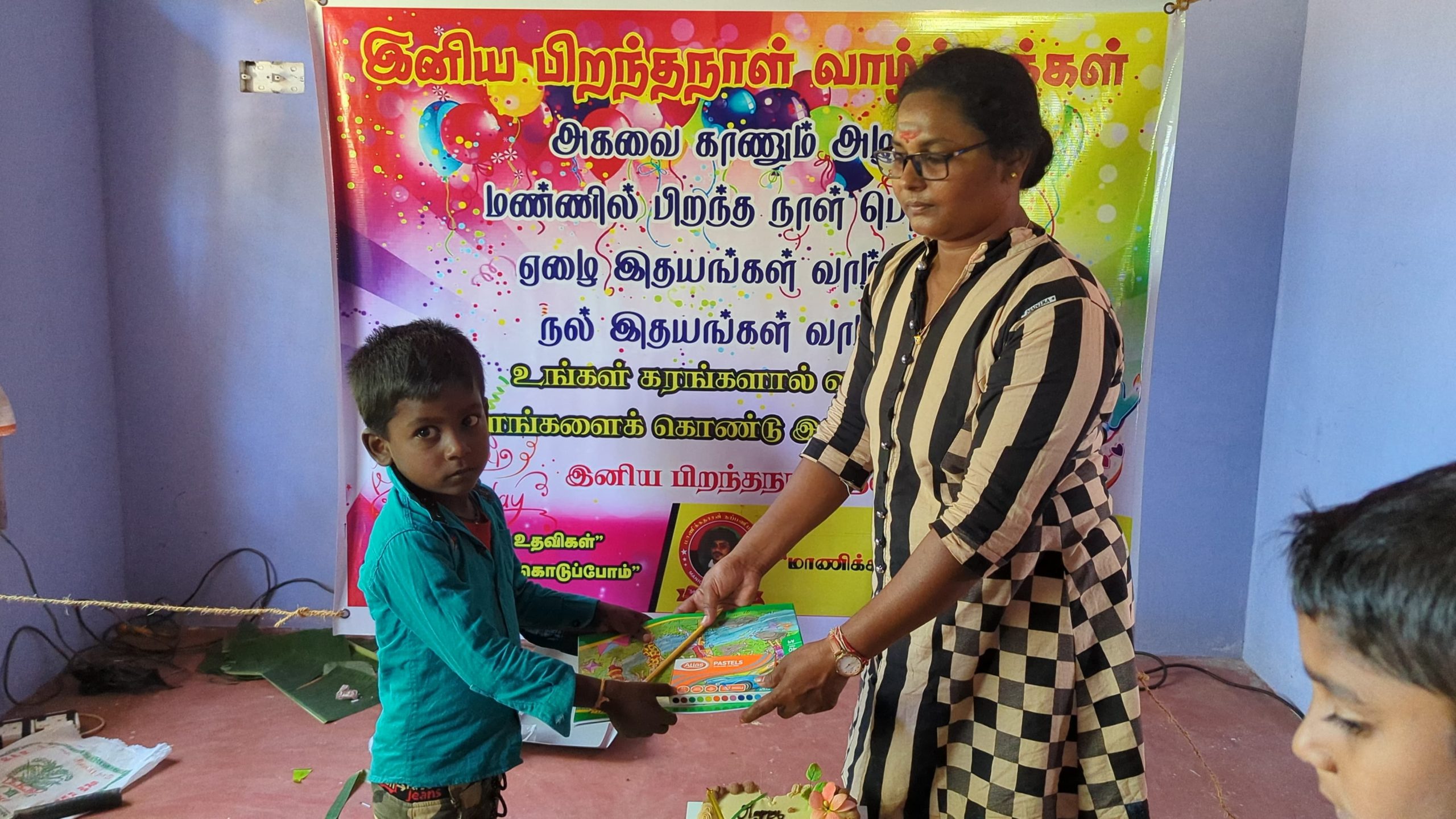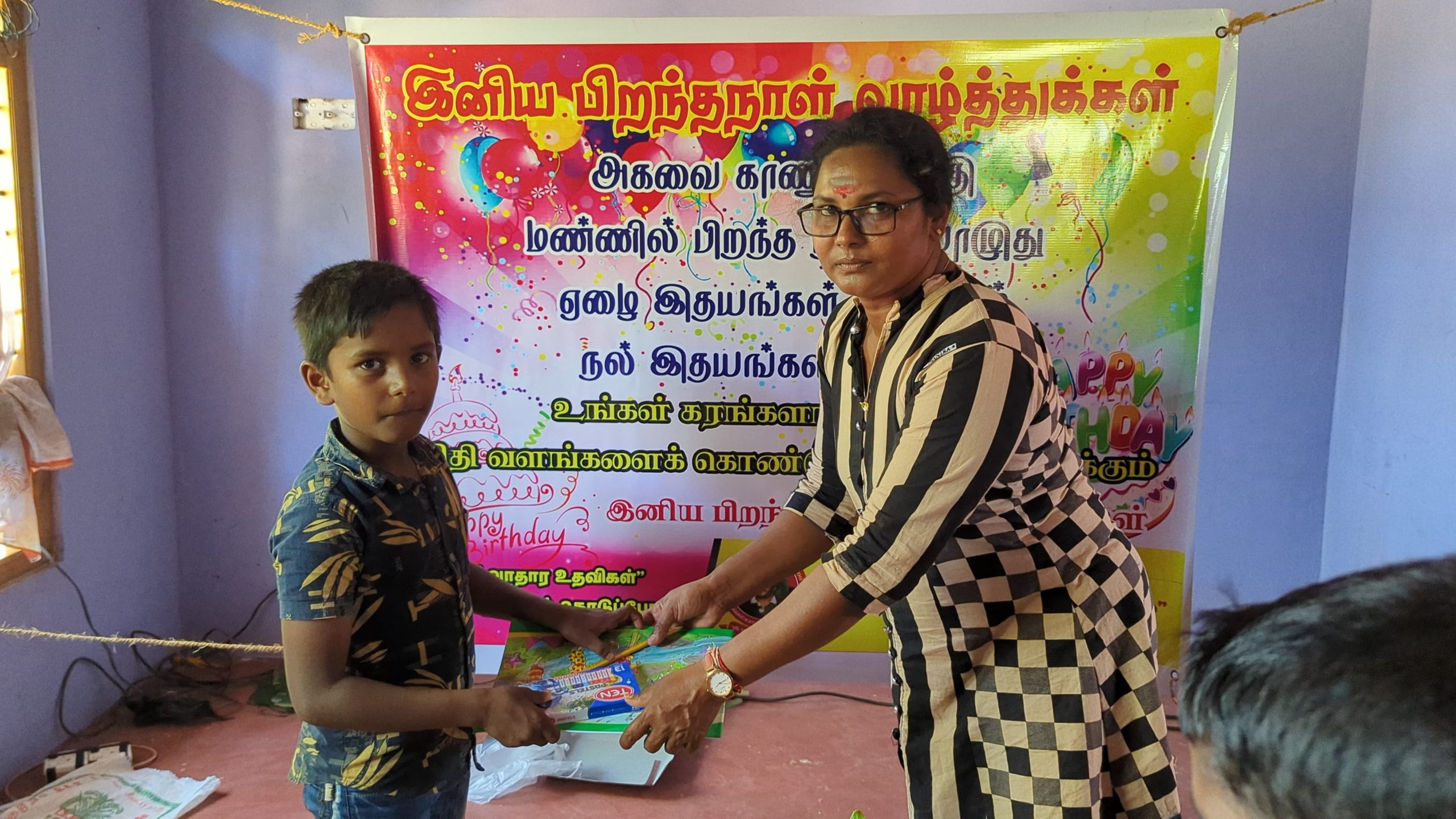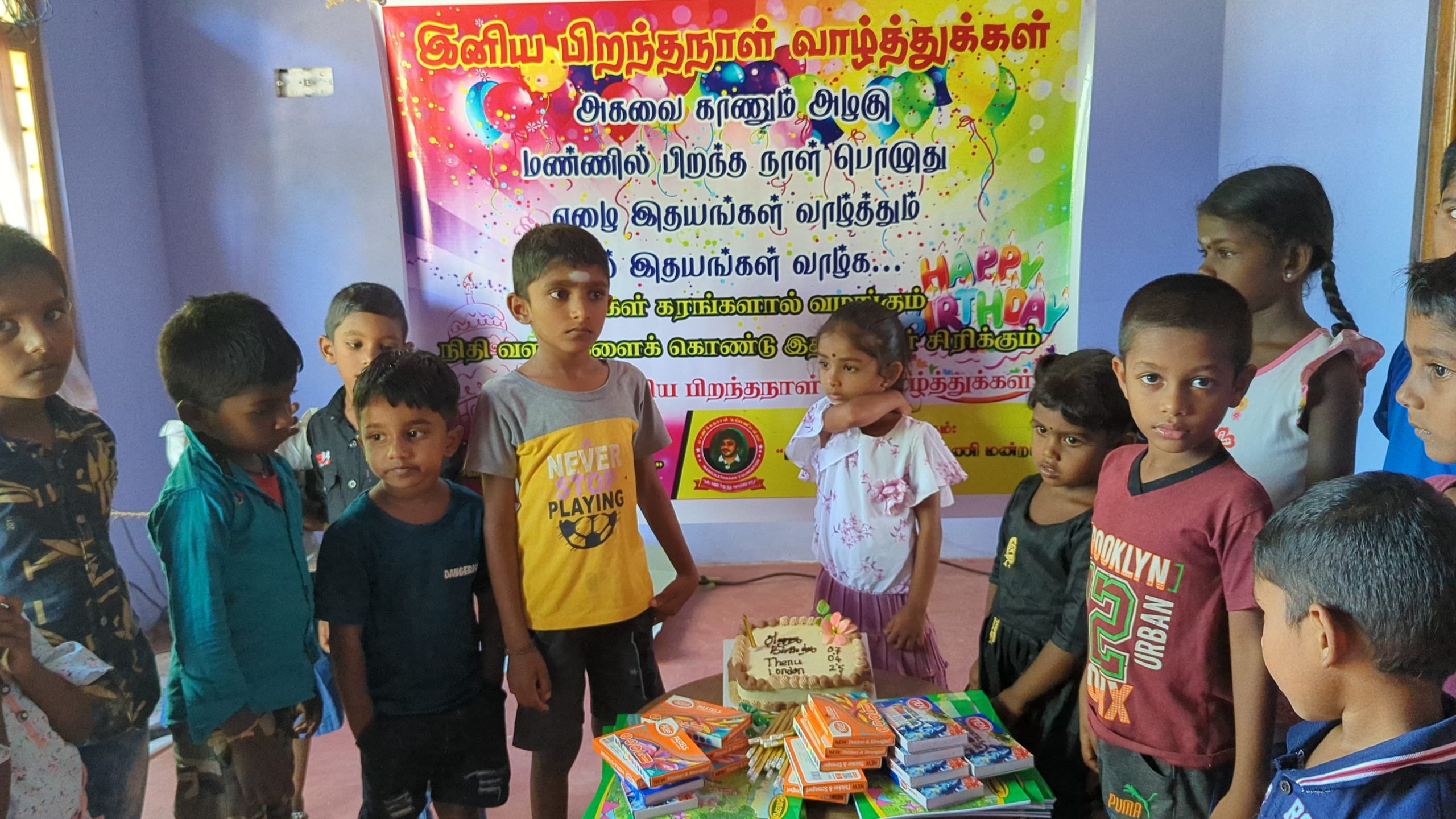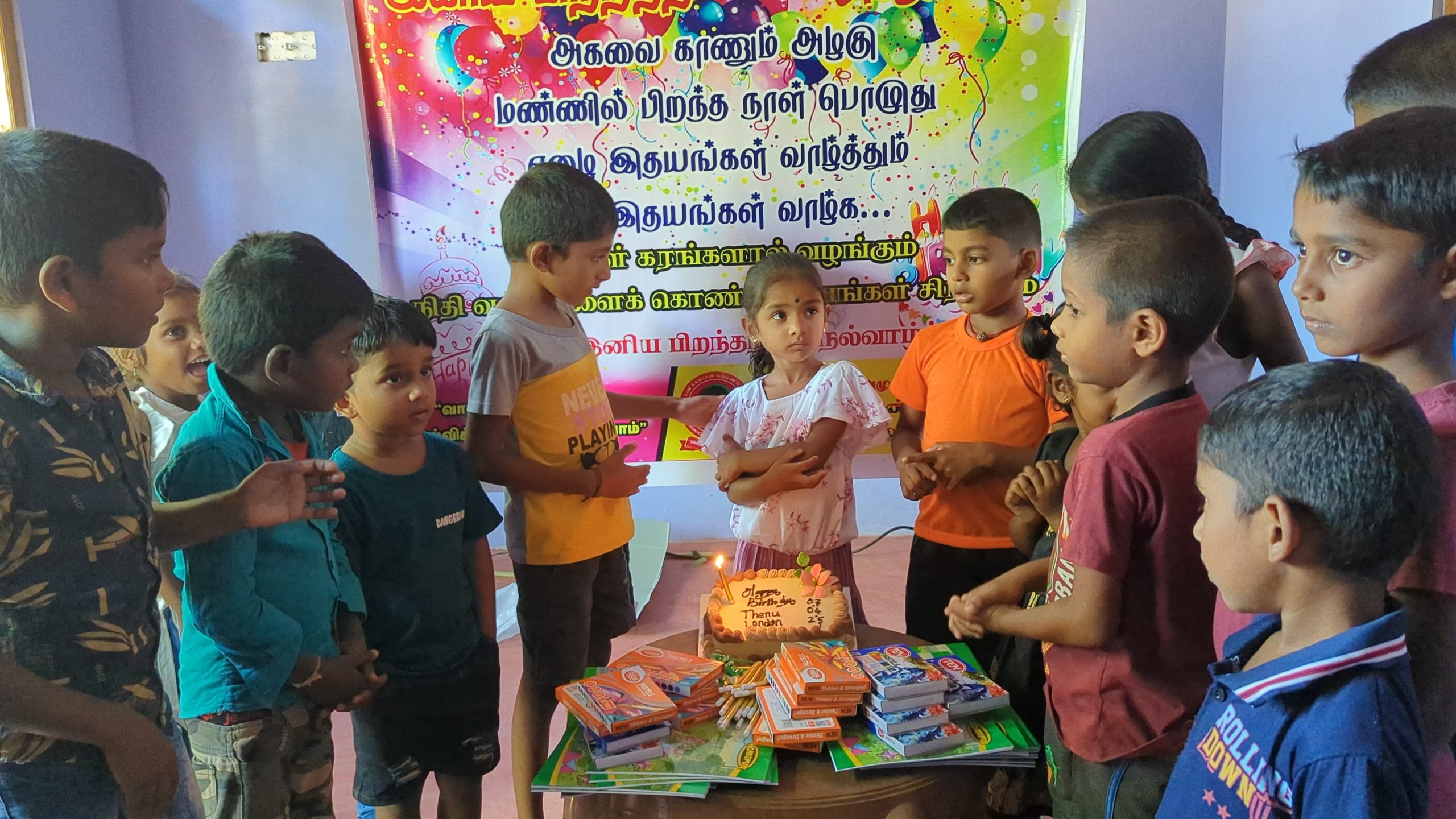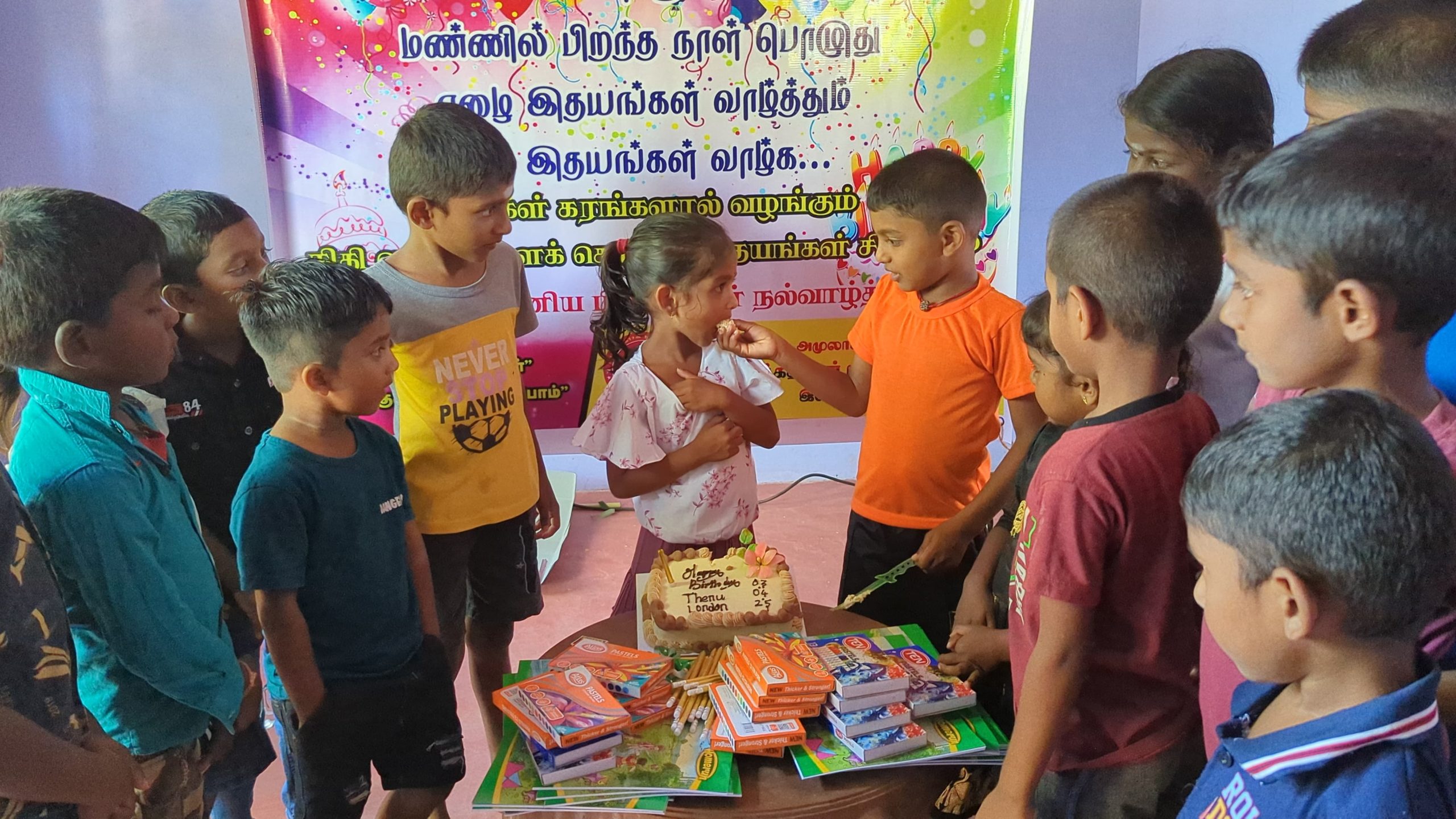 முதல் நிகழ்வாக மாணவ சிறார்களும், பெற்றோர்கள் கலந்து கொண்டு லண்டனில் வசிக்கும் தேனு யோகலிங்கம் அவர்களின் சார்பாக கேக் வெட்டி பிறந்த நாள் பாட்டுப்பாடி மகிழ்ச்சியாக கொண்டாடப்பட்டது.
