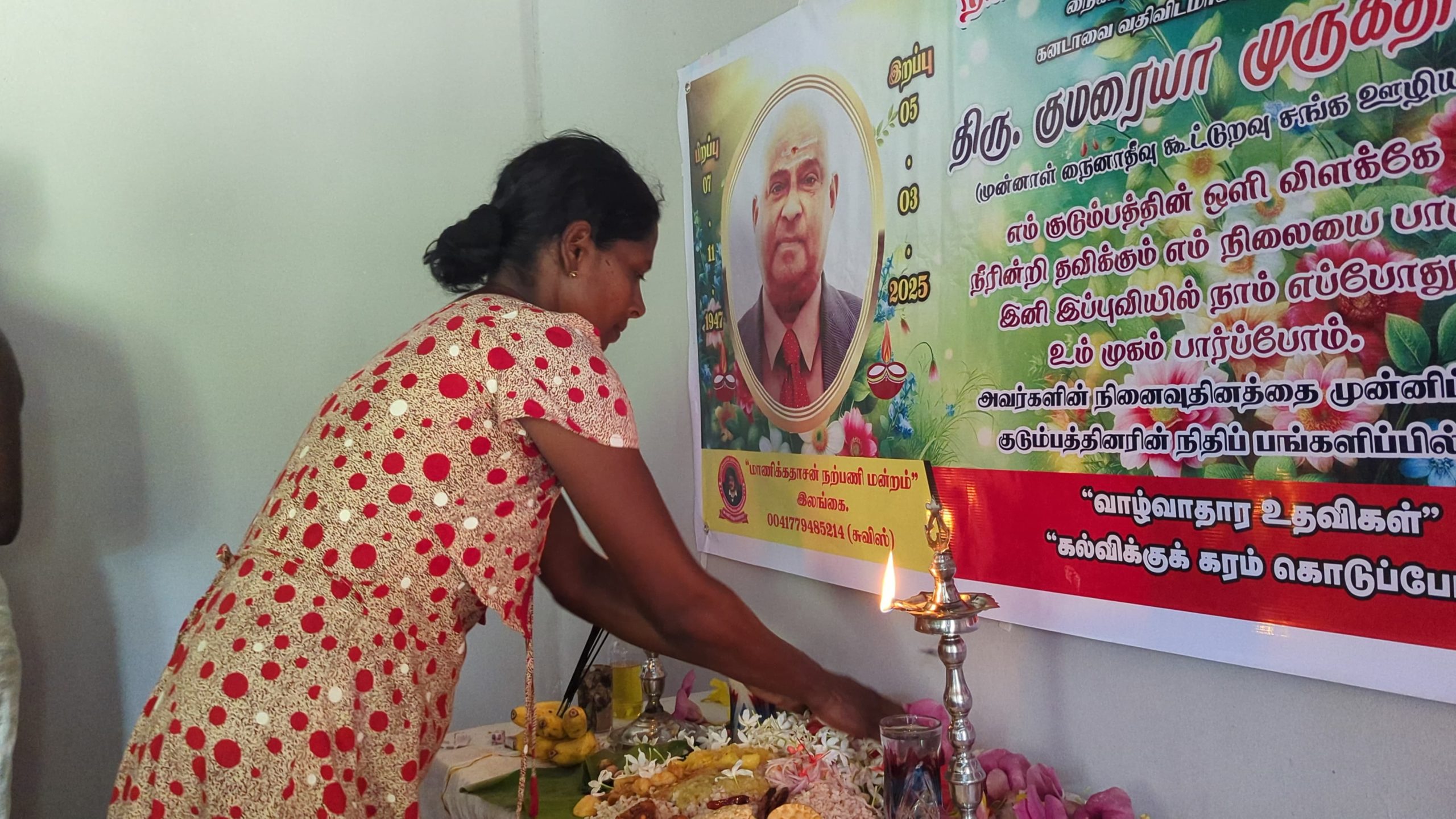 நைனாதீவை சேர்ந்தவரும் கனடாவில் அமரத்துவமடைந்தவருமான அமரர் குமரையா முருகதாஸ் அவர்களின் முப்பத்தியோராம் நாள் நினைவை முன்னிட்டு அன்னாரின் மனைவி, மக்கள், மருமக்கள் மற்றும் உற்றார் உறவினர்கள் சார்பாக அன்னாரின் குடும்பத்தினர் வழங்கிய நிதிப் பங்களிப்பில்.. முதல் நிகழ்வாக வன்னி எல்லைக் கிராமம் இரண்டில் அன்னதான நிகழ்வு பல்வேறு கிராமங்களில் இருந்து வந்து கலந்து கொண்டோரின், அஞ்சலி நிகழ்வுடன் நடைபெற்றது நீங்கள் அறிந்ததே..