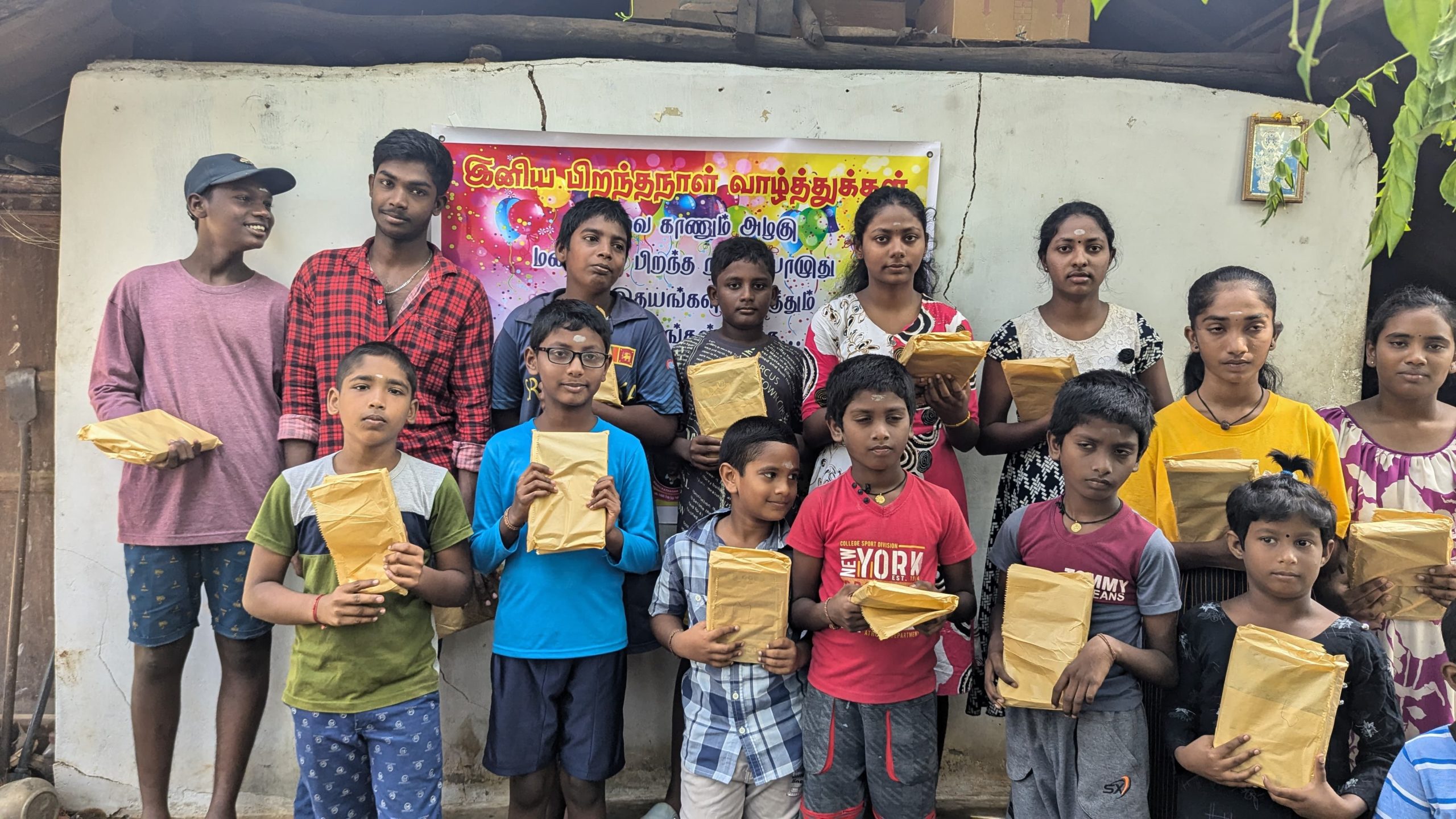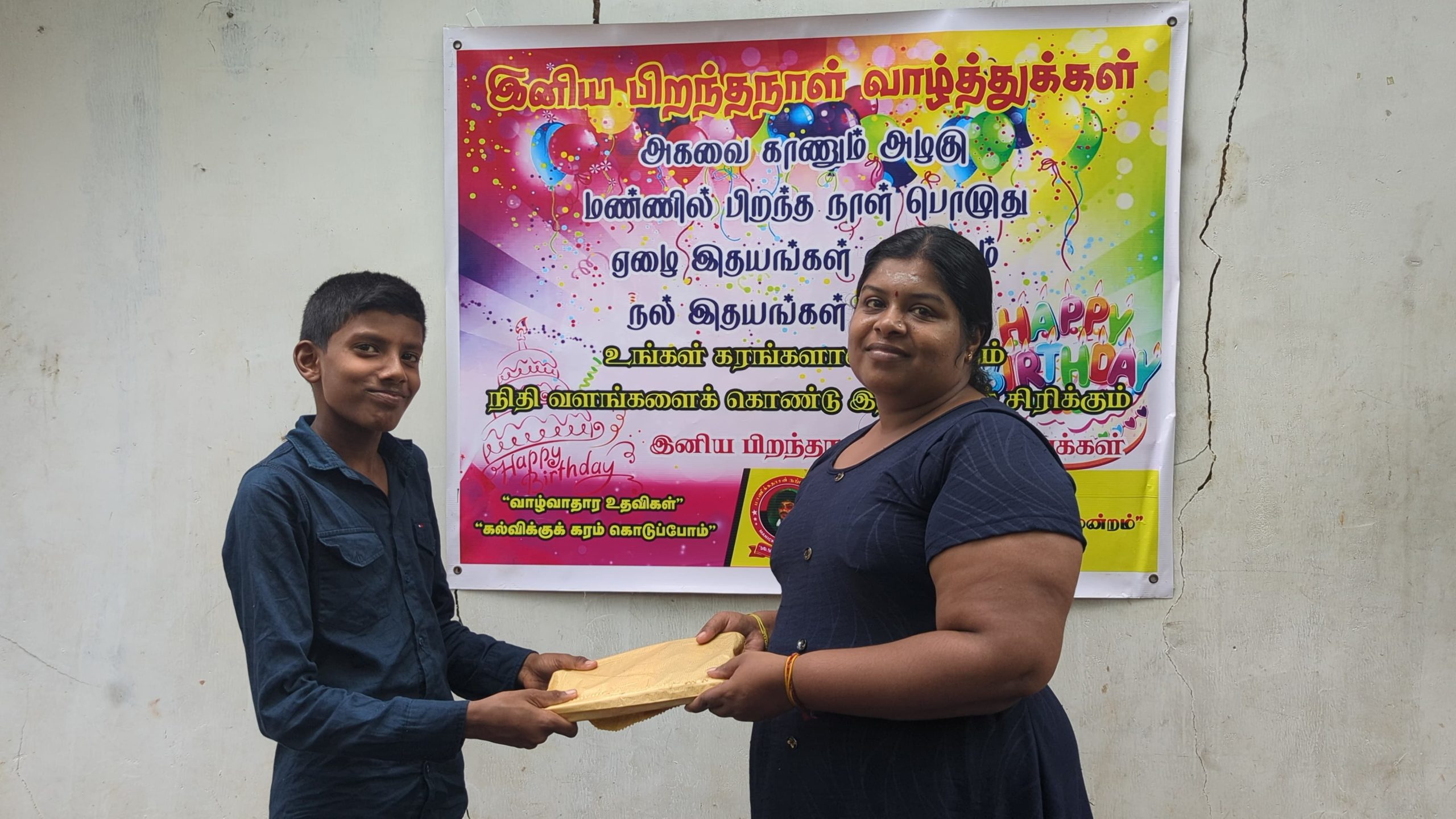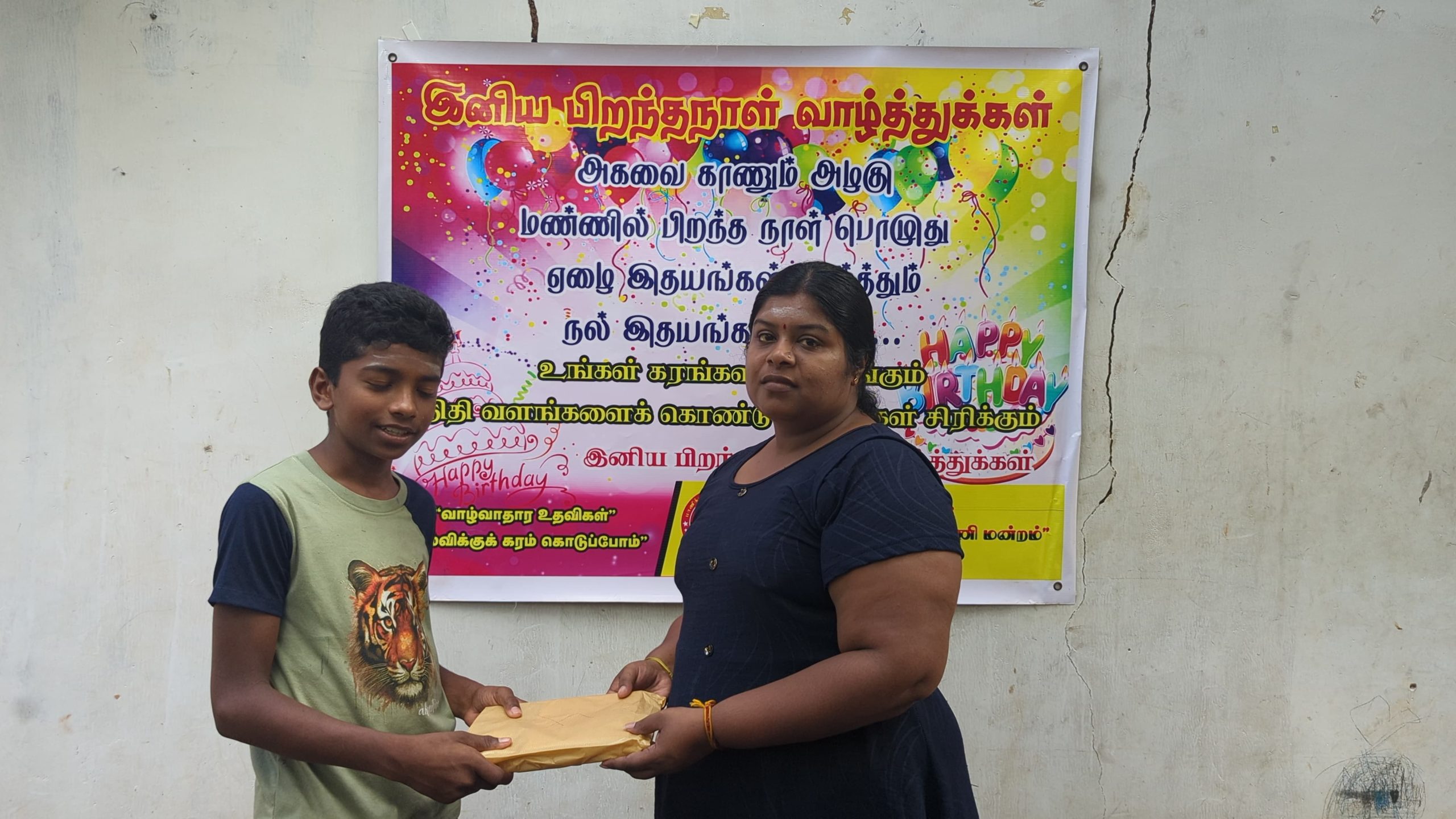 இத்துடன் திரு.திருமதி பாபு மீரா தம்பதிகள் தங்கள் ஏகபுதல்வனான கோபியின் பிறந்த நாளை முன்னிட்டு அக்கிராமத்தில் உள்ள மாலைநேர வகுப்புக்கு செல்லும் மாணவ மாணவிகளுக்கு கற்றலுக்கான அப்பியாசக் கொப்பிகள் வழங்கி வைத்தனர்.