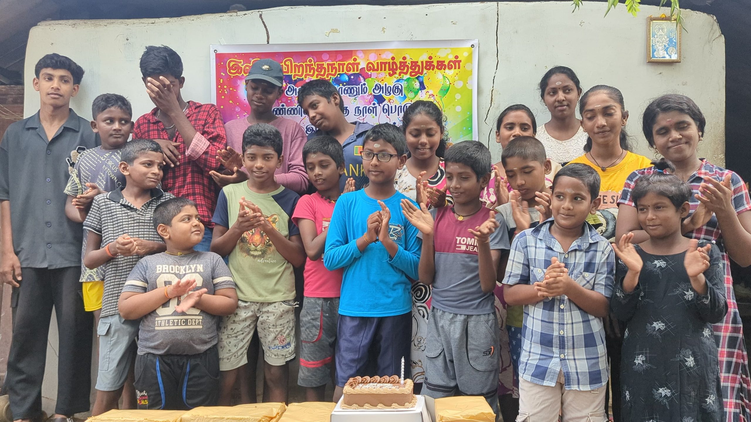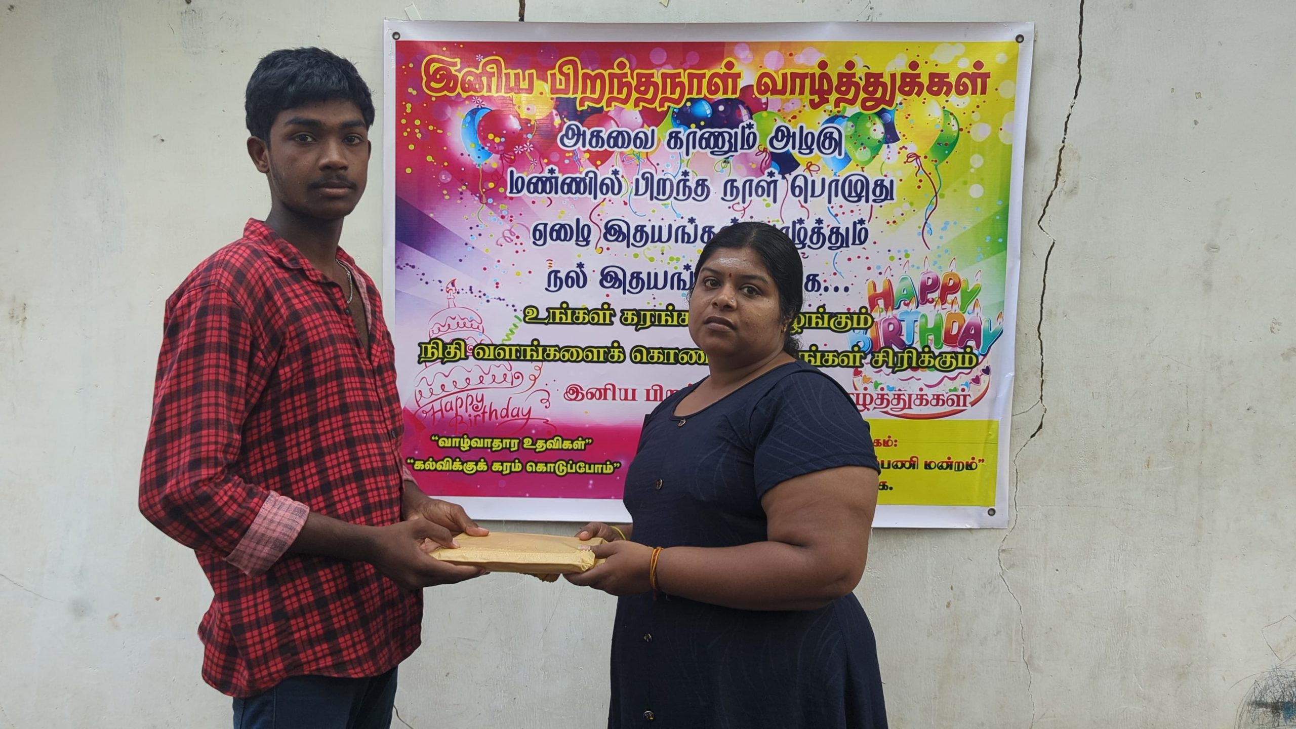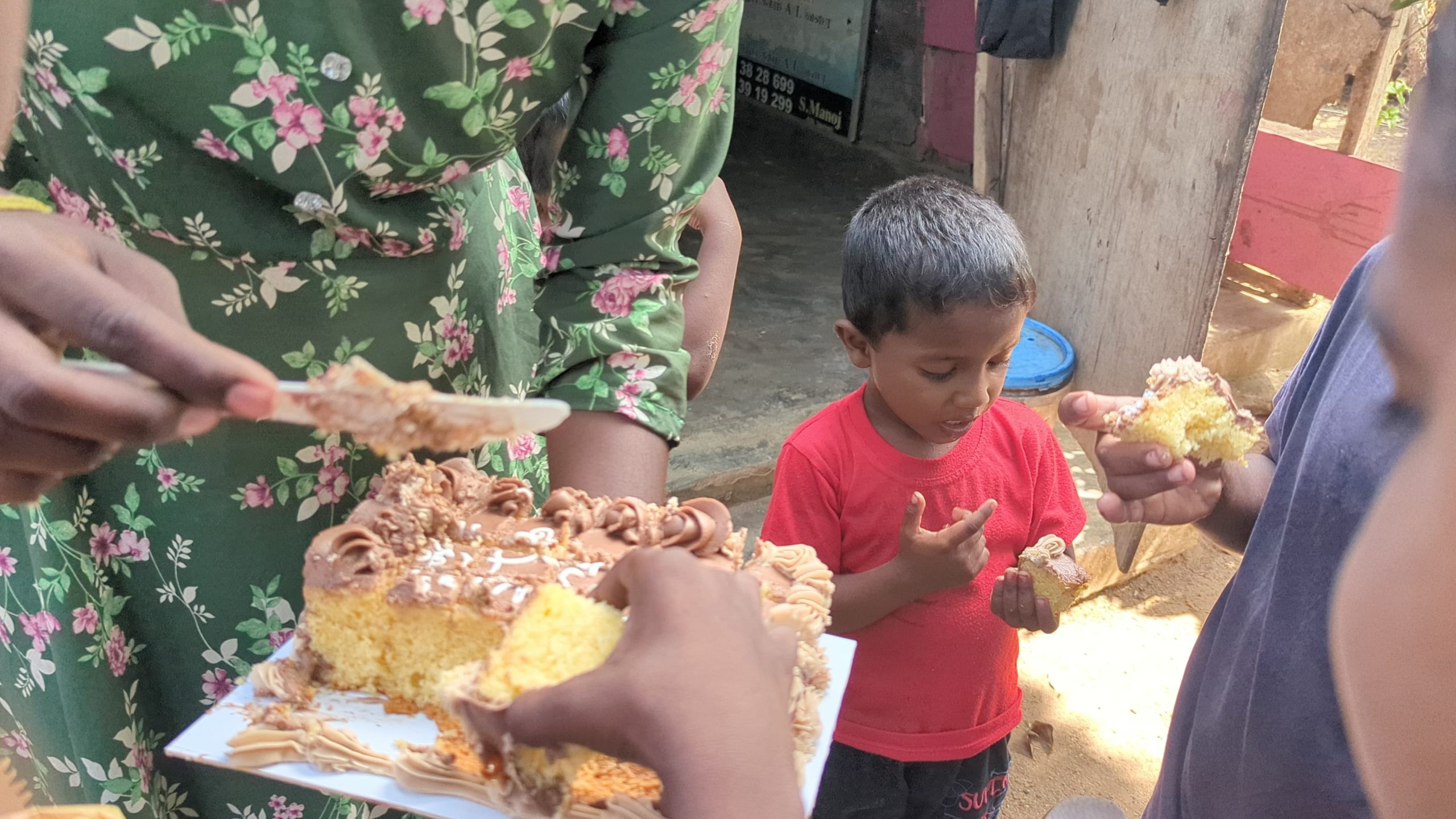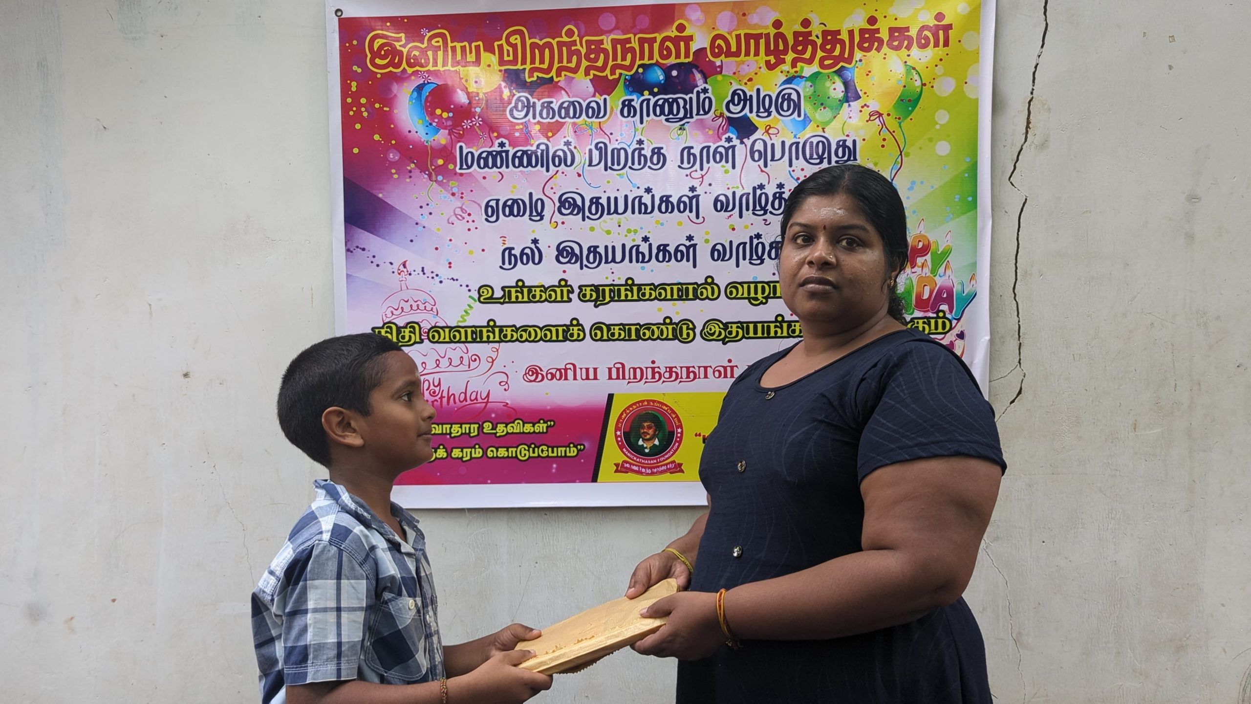 முதல் நிகழ்வாக மாணவ சிறார்களும், பெற்றோர்கள் கலந்து கொண்டு லண்டனில் வசிக்கும் கோபி அவர்களின் சார்பாக கேக் வெட்டி பிறந்த நாள் பாட்டுப்பாடி மகிழ்ச்சியாக கொண்டாடப்பட்டது.