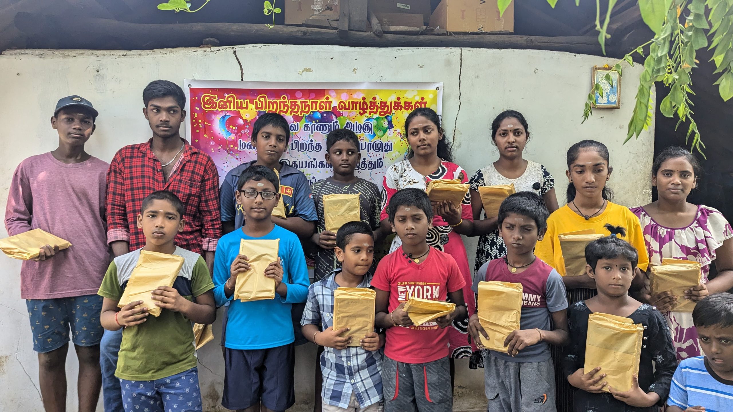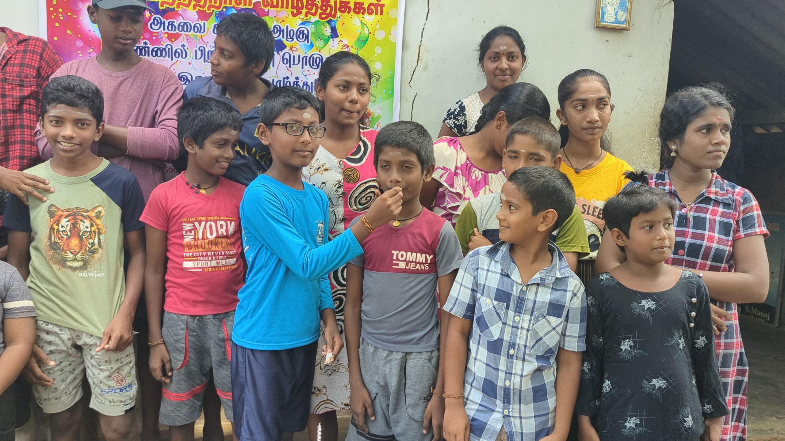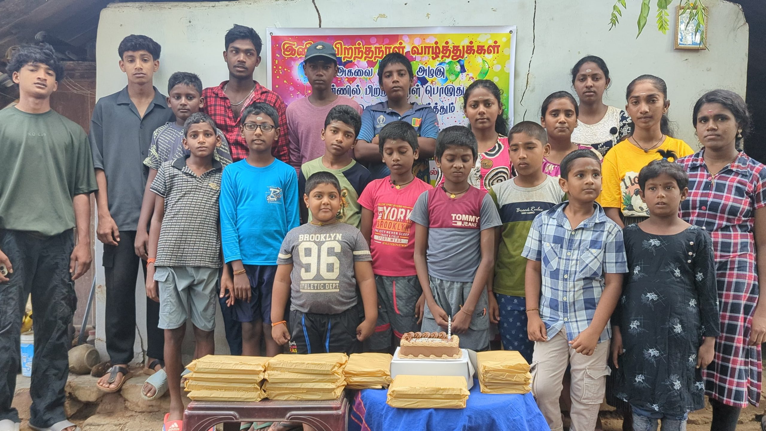லண்டனில் வசிக்கும் பாபு மீரா தம்பதிகளின் ஏகபுதல்வன் கோபி இன்று தனது பிறந்தநாளை ஏழைகளின் இதயம் குளிர வன்னி எல்லைக் கிராமத்தில் மாலைநேர வகுப்புக்கு செல்லும் மாணவ மாணவிகளுக்கு கற்றலுக்கான அப்பியாசக் கொப்பிகள் வழங்கிக் கொண்டாடினார்.