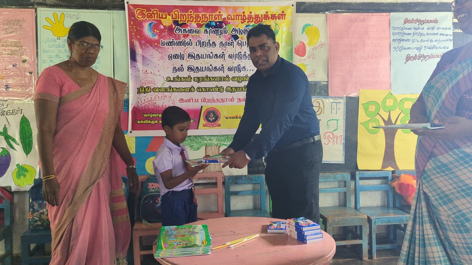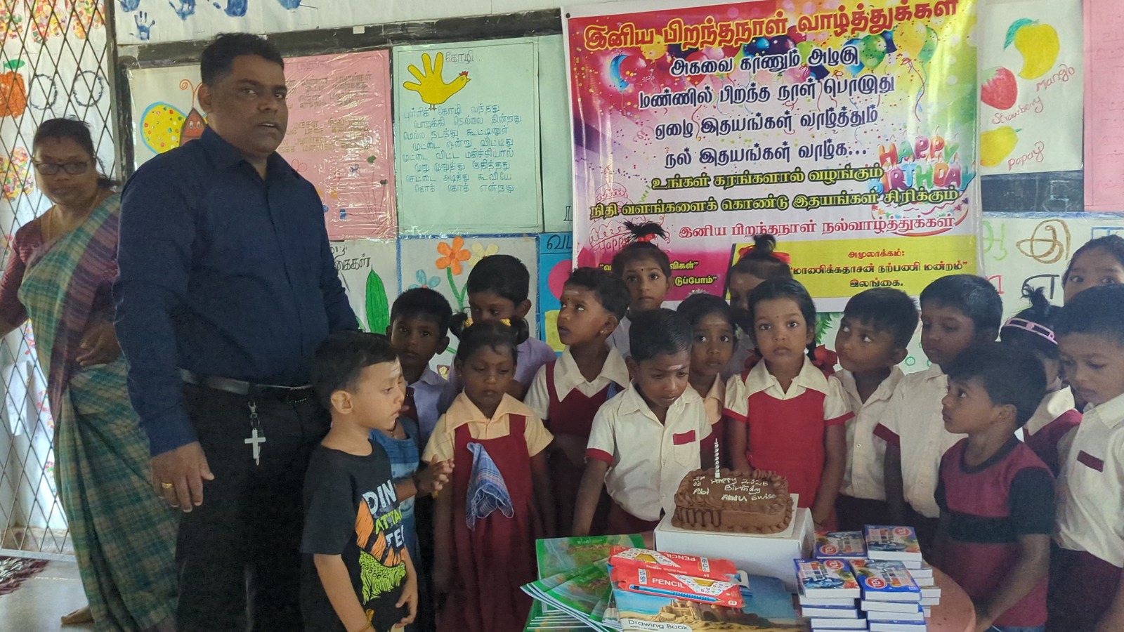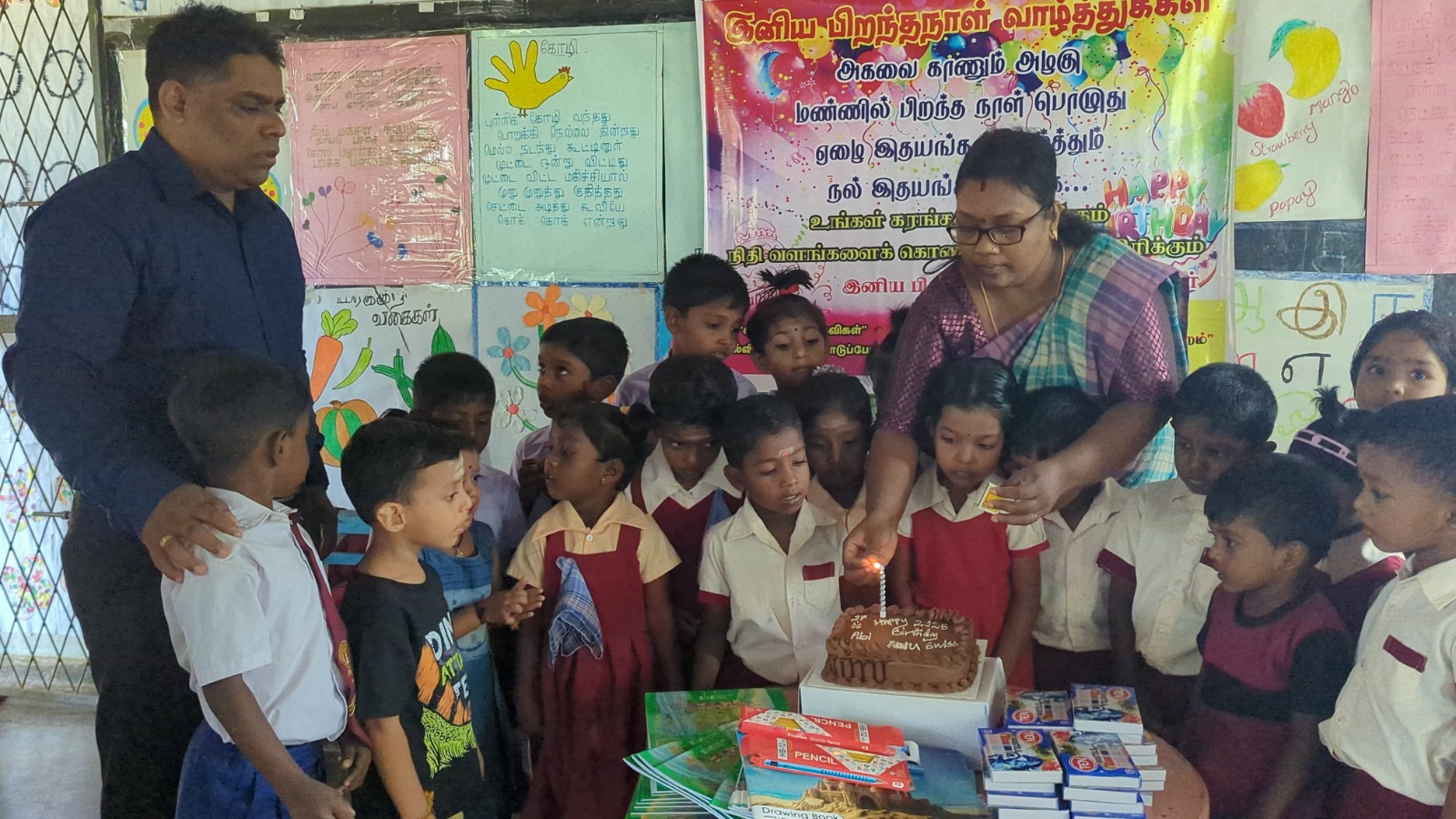 முதல் நிகழ்வாக மாணவ சிறார்களும், பெற்றோர்கள் கலந்து கொண்டு சுவிசில் வசிக்கும் அபி மற்றும் அணு அவர்களின் சார்பாக கேக் வெட்டி பிறந்த நாள் பாட்டுப்பாடி மகிழ்ச்சியாக கொண்டாடப்பட்டது.