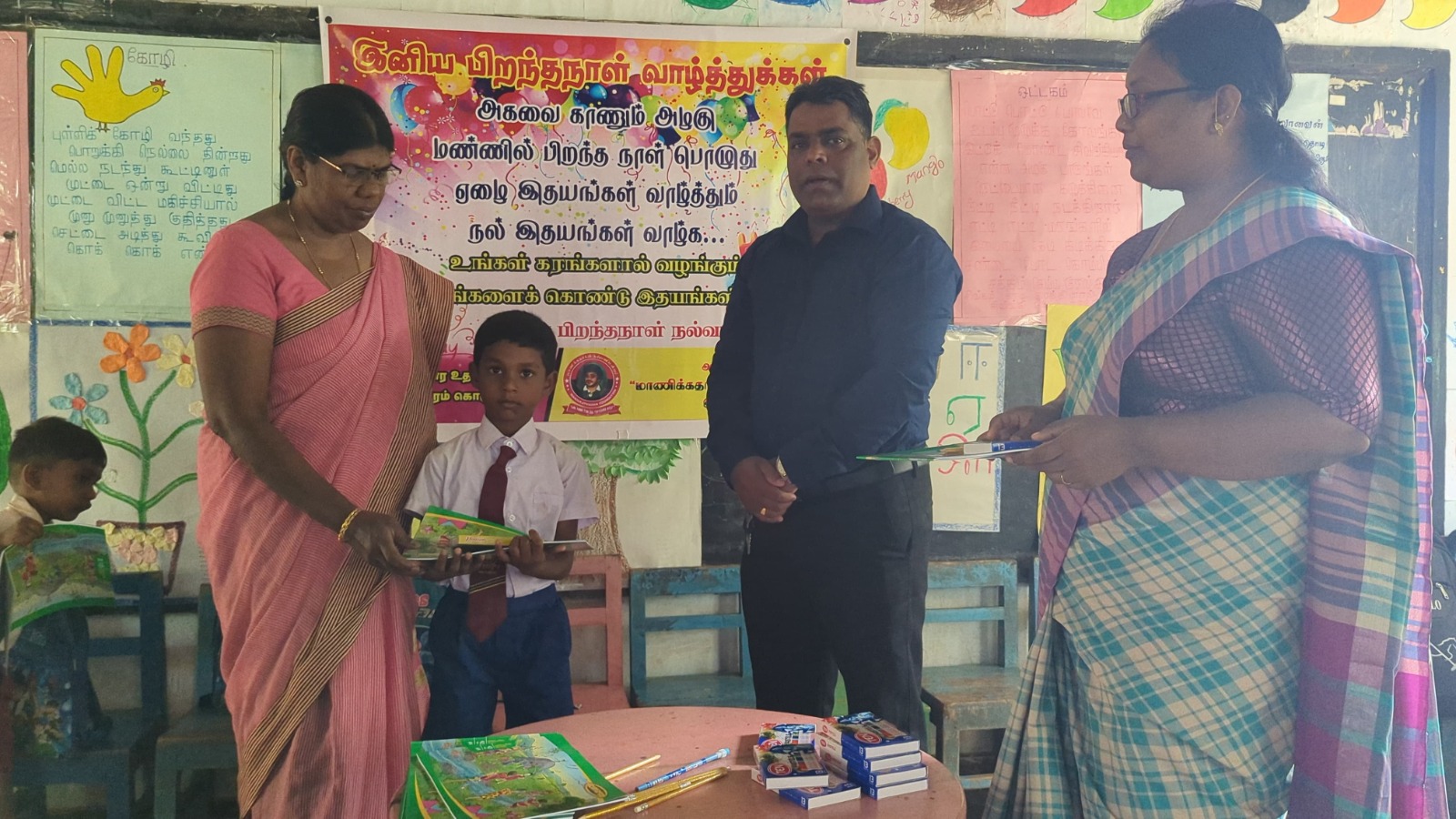 இவ்வாறு பல்வேறு வகைகளில் திரு. திருமதி சுதாகரன் செல்வி தம்பதிகள் தாயக உறவுகளுக்கு உதவி செய்ய வேண்டும் என்பதற்காகவே பல்வேறு வகைகளில், இவ்வாறான பணிகளை செய்து வருகின்றார்கள். அந்தவகையில் இன்றைய நாளில் பிறந்தநாள் கொண்டாடும் அவர்களின் இரட்டைச் செல்வங்களான அபி அனு ஆகியோரை, அவரது அம்மா, அப்பா, அண்ணன் ஆதி மற்றும் அவர்களின் உறவுகள் ஆகியோருடன், தாயக உறவுகளும், “மாணிக்கதாசன் நற்பணி மன்றமும்” இணைந்து பல்கலையும் கற்று, அனைத்து செல்வங்களும் பெற்று பல்லாண்டு காலம் நீடூழி வாழ்க வாழ்கவென இனிய பிறந்தநாள் வாழ்த்துக்களை தெரிவித்துக் கொள்கிறது.