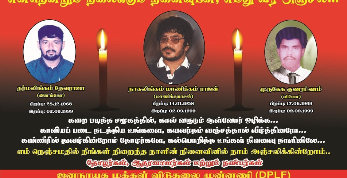 “புளொட்” தளபதி மாணிக்கதாசன் அவர்களின் 26வது நினைவு நாளில், வாழ்வாதார உதவிகள் வழங்கல்.. (வீடியோ படங்கள்) ################################ தமிழீழ மக்கள் விடுதலைக் கழகத்தின் (புளொட்) இராணுவத் தளபதியும், உப தலைவருமான “கண்ணாடி அன்றில் தாசன் அண்ணா” என அன்புடன் அழைக்கப்பட்ட “மக்கள் போராட்டத்தின் மகத்தான தளபதி” தோழர் மாணிக்கதாசன் மற்றும் அவரோடு மரணித்த தோழர் இளங்கோ, தோழர் வினோ ஆகியோரின் இருபத்திஆறாவது நினைவாண்டு தாயகத்திலே உணர்ச்சிபூர்வமாக நினைவு கூறப்பட்டது. தமிழீழ மக்கள் விடுதலைக் கழகத்தின் புலம்பெயர்ந்து வாழும் … Continue reading “புளொட்” தளபதி மாணிக்கதாசன் அவர்களின் 26வது நினைவு நாளில், வாழ்வாதார உதவிகள் வழங்கல்.. (வீடியோ படங்கள்)