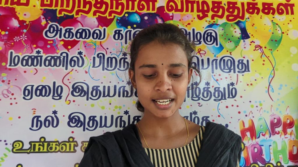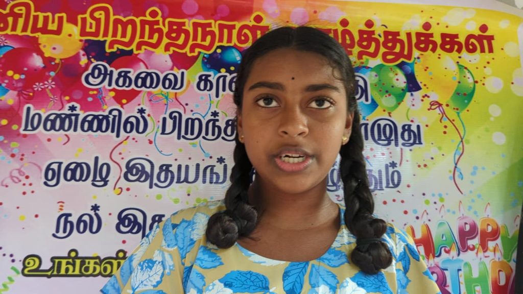 ஏழைகளின் சிரிப்பில் இறைவனை காணும் உள்ளங்கள் வரிசையில் பிறந்தநாளைக் கொண்டாடினார் கனடாவில் வசிக்கும் திருமதி.ராகவி கிரேக் அவர்கள்.