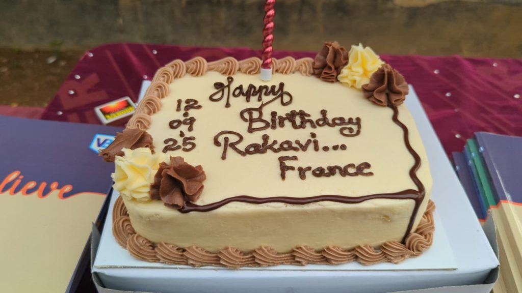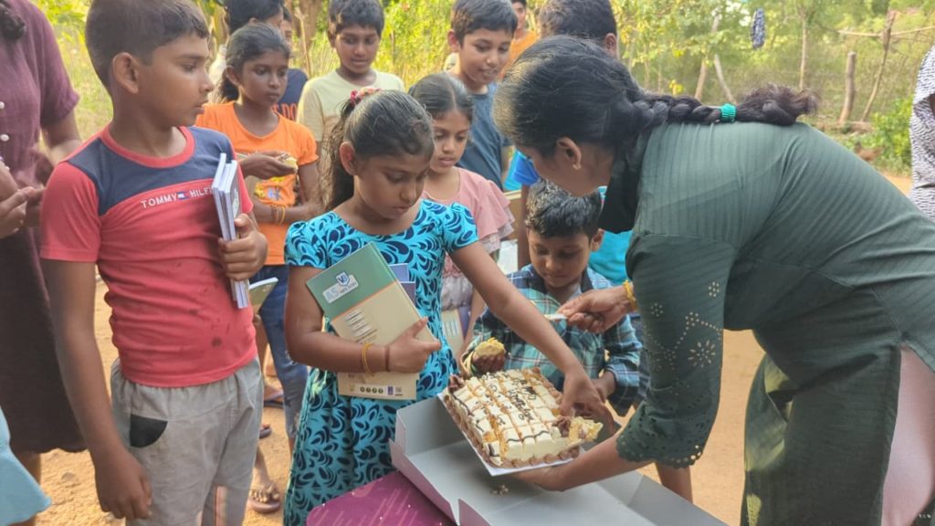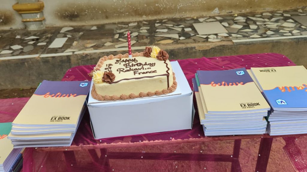 முதல் நிகழ்வாக மாணவர்கள் பெற்றோர்கள் கலந்து கொண்டு பிரான்சில் வசிக்கும் ராகவி அவர்களின் சார்பாக மாணவர்கள் கேக் வெட்டி பிறந்தநாள் பாட்டுப்பாடி மகிழ்ச்சியாக கொண்டாடப்பட்டது.