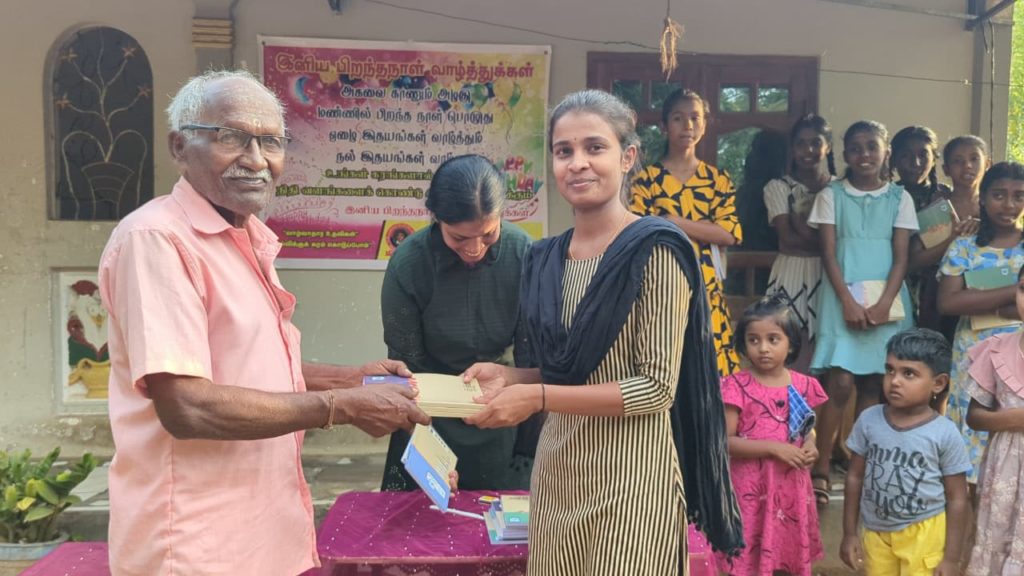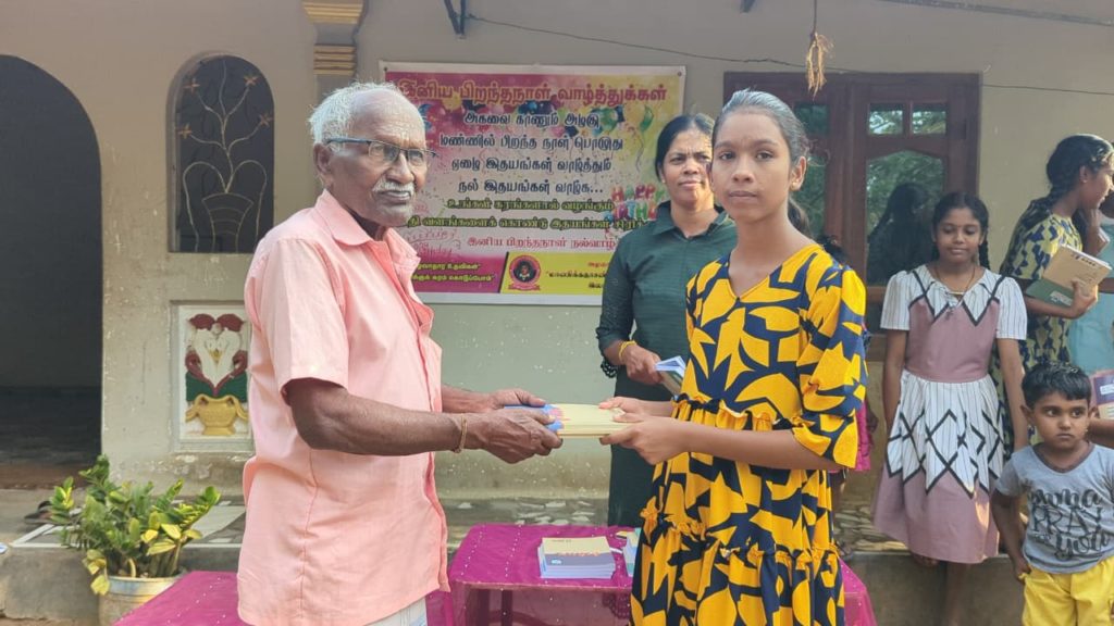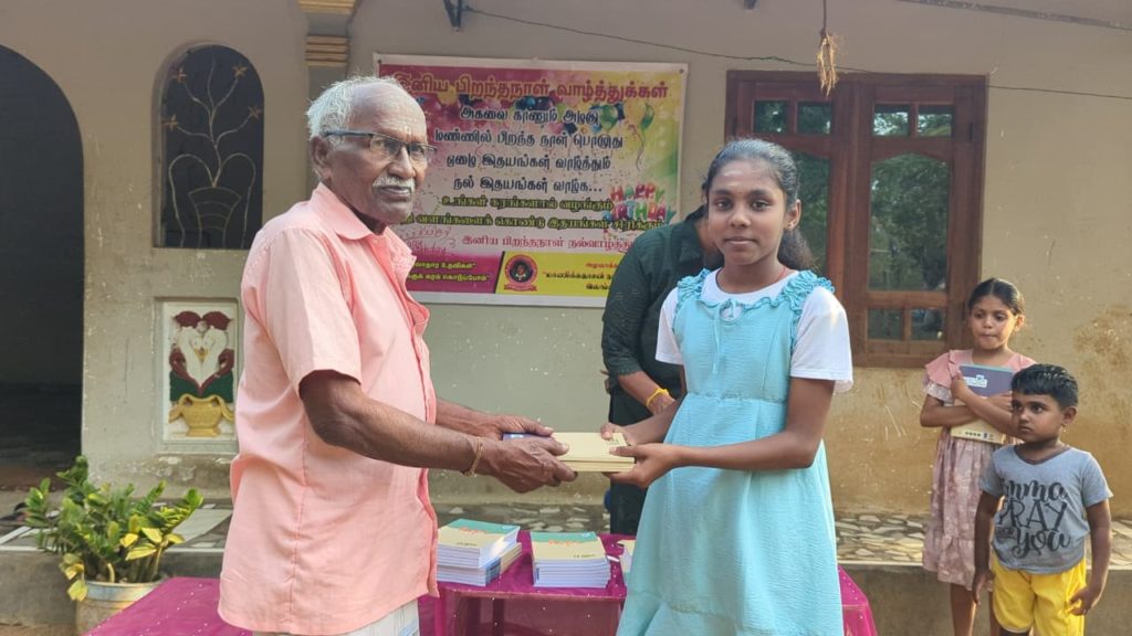 கனடாவில் வாழ்ந்து இப்போது பிரான்சில் வசிக்கும் திருமதி.ராகவி கிரேக் அவர்களது பிறந்தநாள் தாயக கிராமத்து உறவுகளினால் மக்களுக்கு இன்றைய அவசிய தேவையான கல்விக்கு கரம் கொடுப்போம் திடடத்தின் கீழ் உதவிகள் வழங்கி வெகு விமரிசையாக கொண்டாடப்பட்டது.