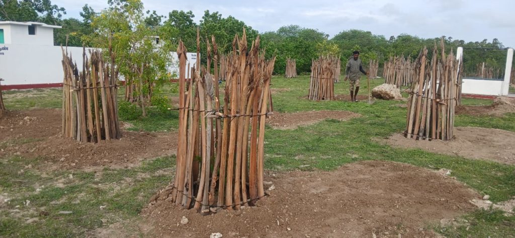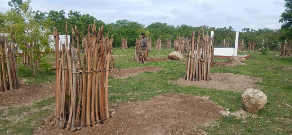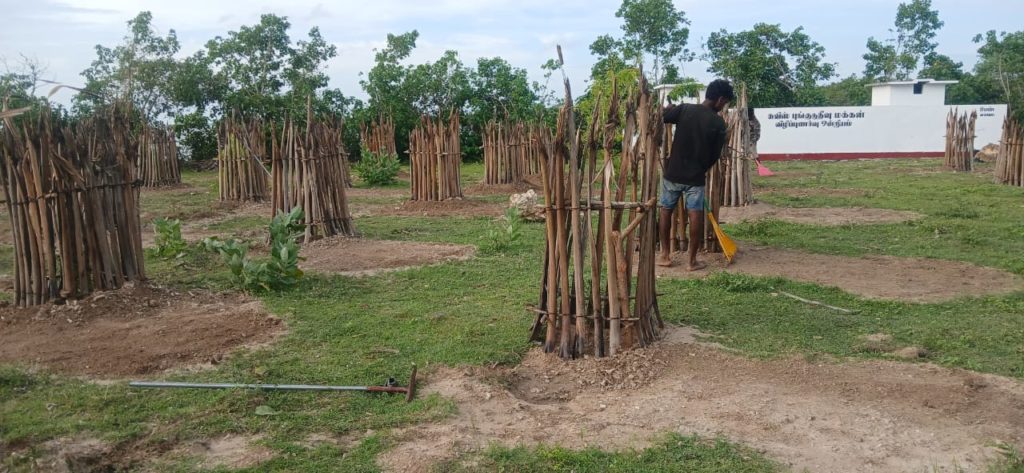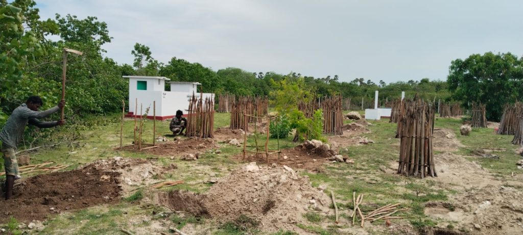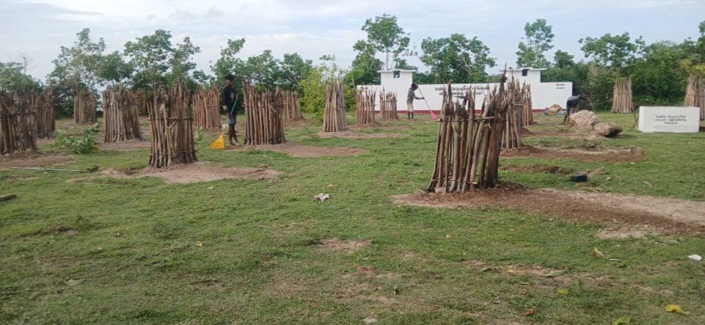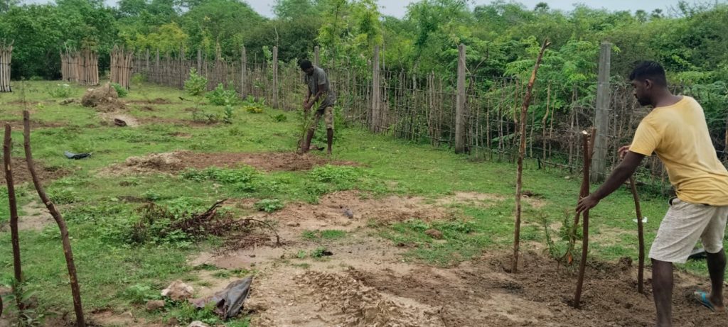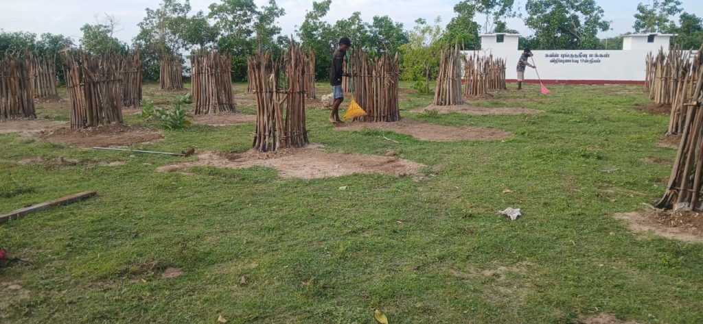 இதனைத் தொடர்ந்து இவ்வாரம் பலத்த மழைக்கு மத்தியில் இரவுபகலாக வேலை செய்து மேலும் பல நிழல்தரும் பயனுள்ள பல்வேறு மரங்கள் நடப்பட்டது. இதன் முதல் நிகழ்வாக இயந்திரம் மூலம் குழி தோண்டப்பட்டு அதில் இருந்த பாறாங்கற்கள் அகற்றப்பட்டு பயன்தரு மரக்கன்றுகள் நடப்பட்டதுடன், அதனைச்சுற்றி பாதுகாப்புக்காக மட்டைகளால் அடைக்கப்பட்டது.