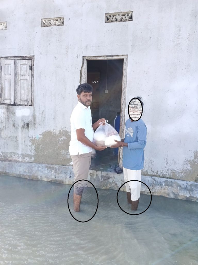 கடந்த சில நாட்களாக பெய்த மழையினால் மிகவும் பாதிக்கப்பட்ட புங்குடுதீவு 1ஆம் வட்டாரம், 25 வீட்டுத்திட்டத்தில் வசிக்கின்ற மக்கள் வெள்ளத்தில் வதியும் நிலையை புங்குடுதீவு வேலணை பிரதேசசபை உறுப்பினர் சஞ்ஜீவ் அவர்கள் அறிய தந்த நிலையில் புங்குடுதீவு 1ஆம் வட்டாரம், 25 வீட்டுத்திட்டத்தில் வசிக்கின்ற மக்களுக்கு புலம்பெயர் புங்குடுதீவு உறவுகள் நால்வர் சிலநாட்களுக்கு தேவையான பெறுமதியான உலருணவுப் பொருட்கள் அடங்கிய பொதிகளை வழங்கி வைத்தனர். அக்குடும்பங்களுக்கான உலருணவுப் பொருட்கள் பொதிகளை வேலணை பிரதேசசபை உறுப்பினர் சஞ்ஜீவ் மற்றும் J/28 கிராம சேவகர் கிறிஸ்ரி யுவராஜ் ஆகியோரால் கடும் சிரமத்துக்குள் வெள்ளத்தின் மத்தியில் இன்றையதினம் வழங்கி வைக்கப்பட்டது.
