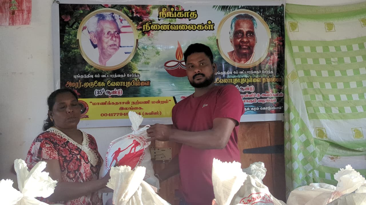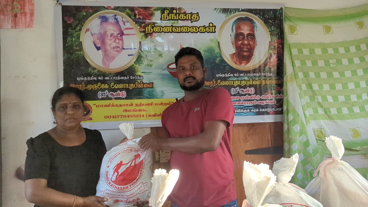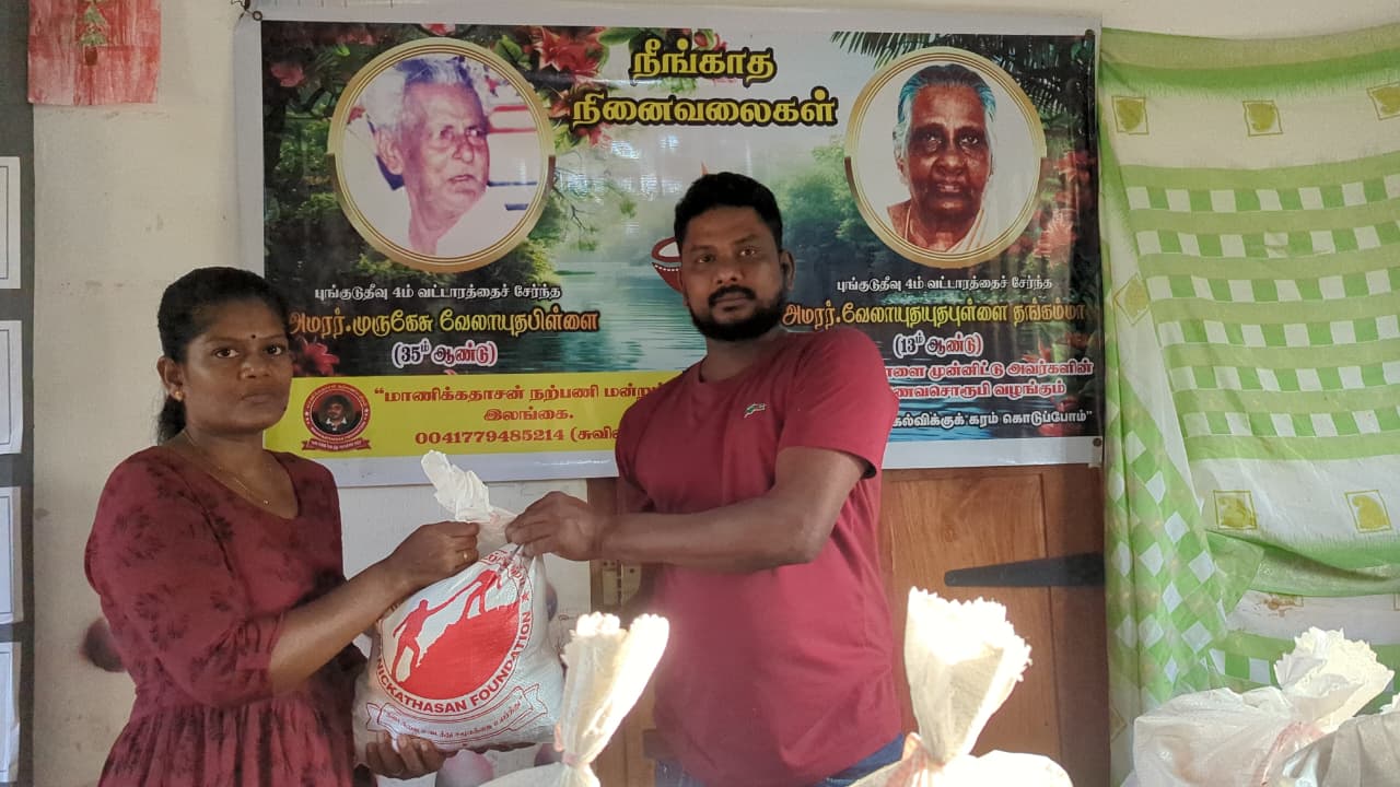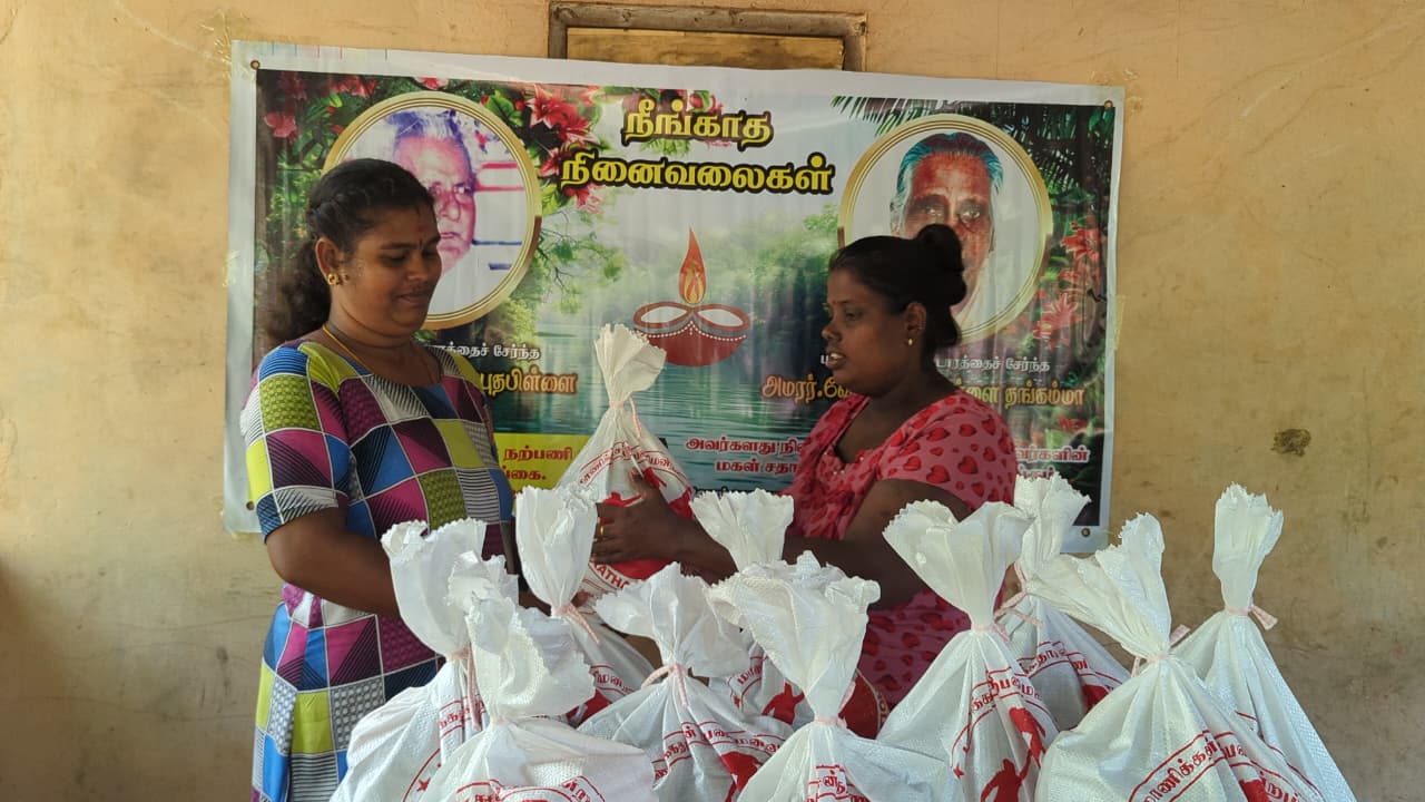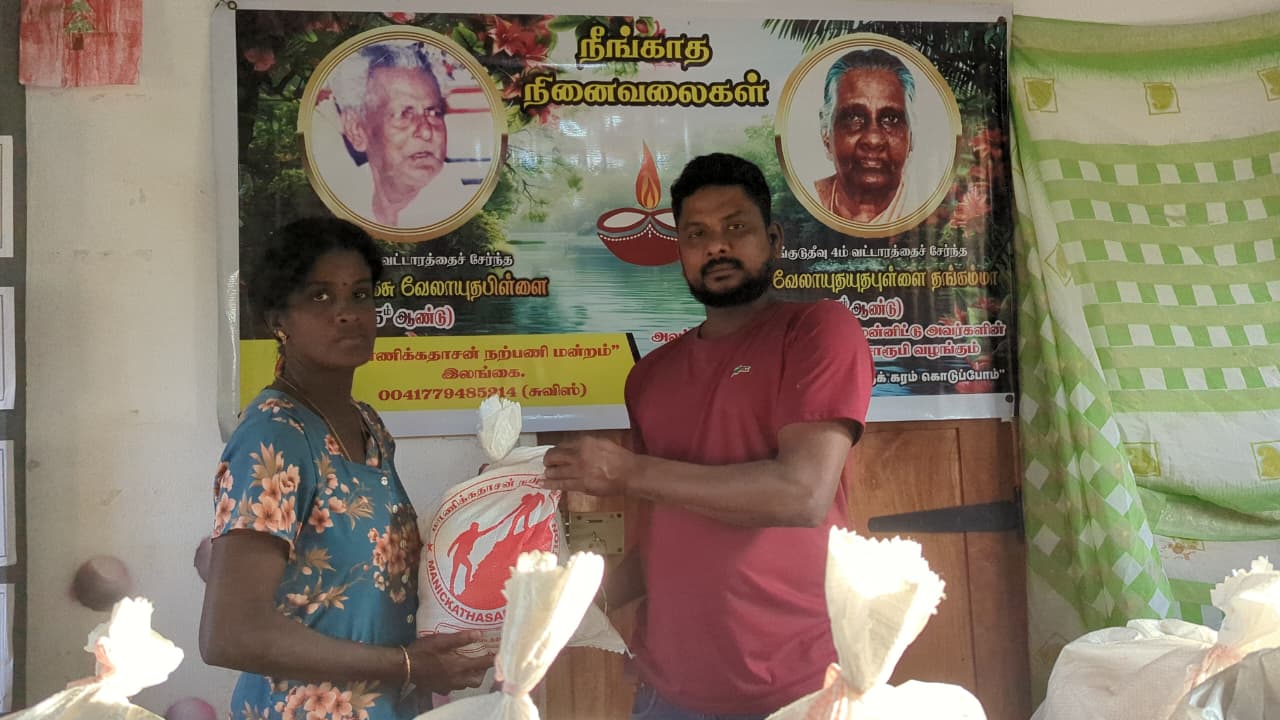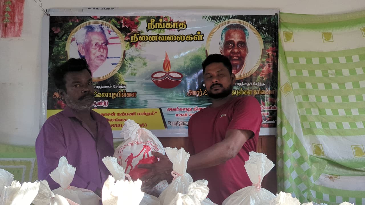 நினைவுநாளை முன்னிட்டும் அன்னாரின் பிள்ளைகள், மருமக்கள், பேரப்பிள்ளைகள் சார்பாக அன்னாரின் மகளும் பிரான்ஸ் நாட்டில் வாழ்பவருமான திருமதி.சதாசிவம் பிரணவசொரூபி அவர்களின் நிதிப் பங்களிப்பில் பெறுமதியான உலருணவுப் பொதிகள் வழங்கும் நிகழ்வு நடத்தப்பட்டது.