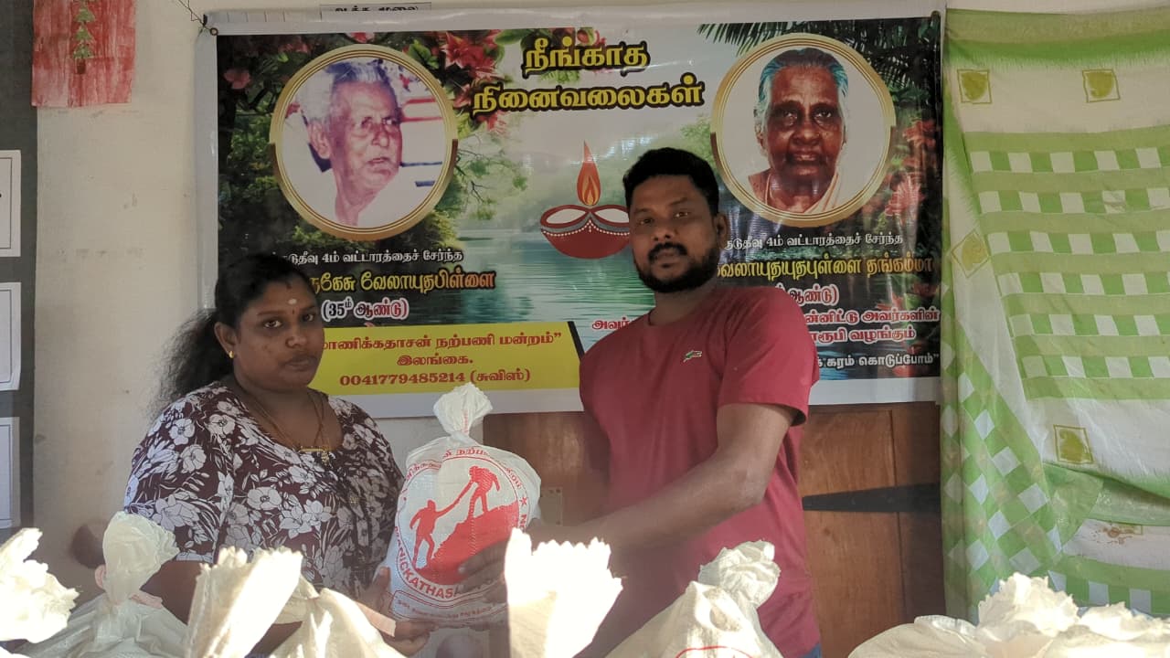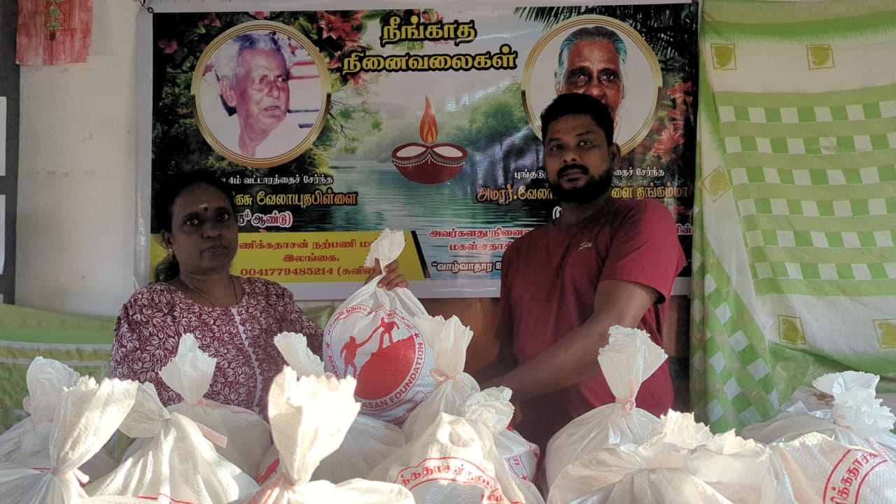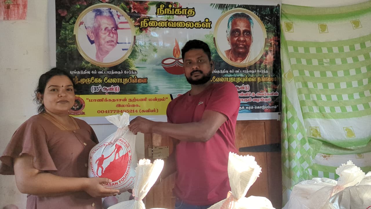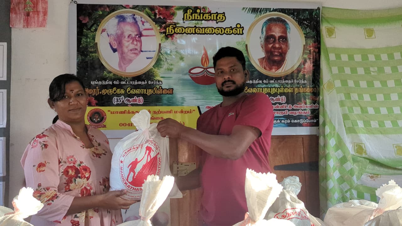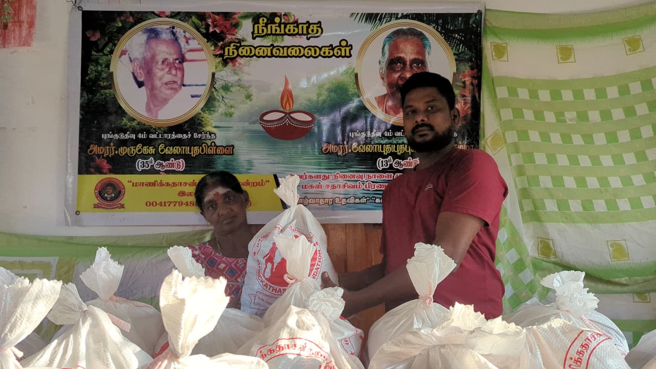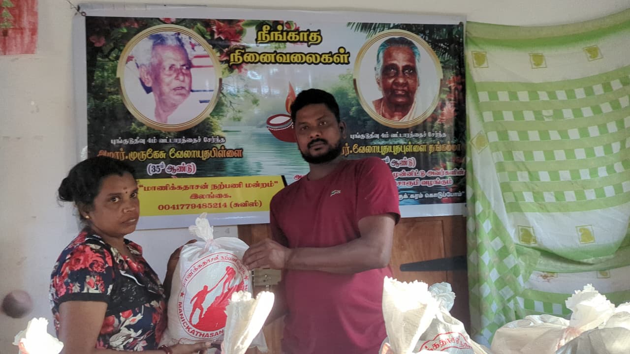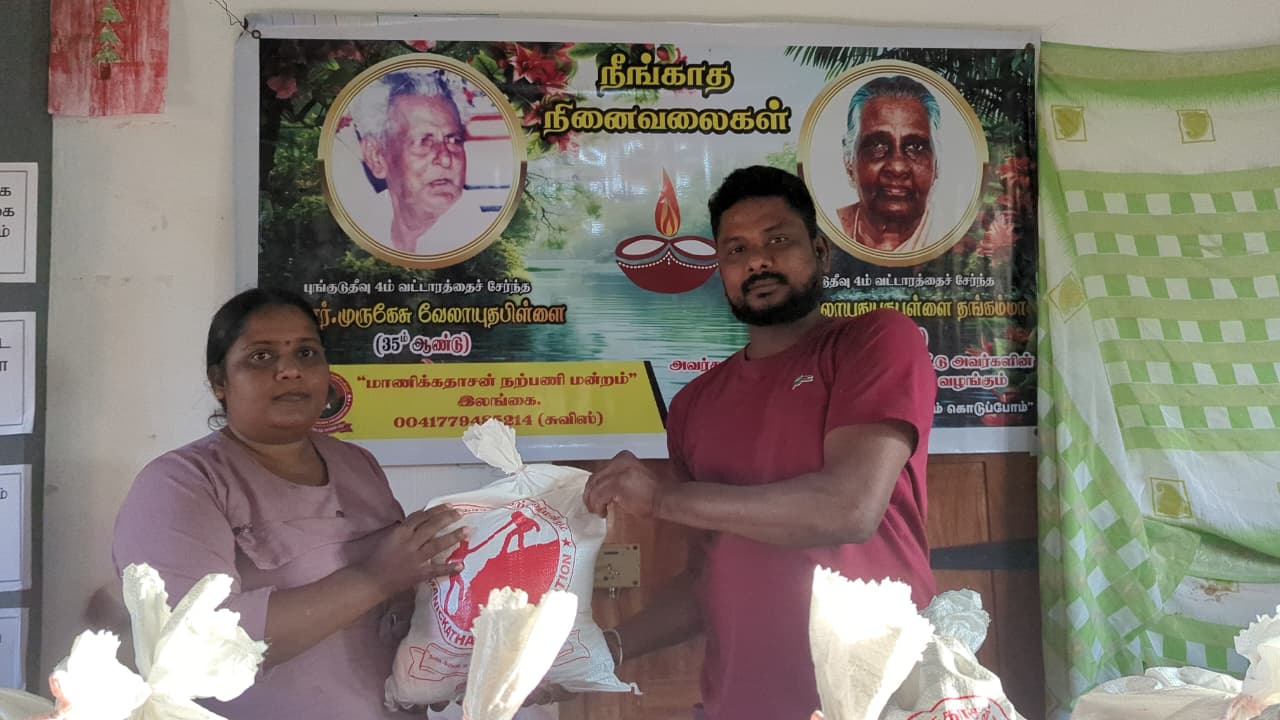 நினைவுநாளை முன்னிட்டும் அன்னாரின் பிள்ளைகள், மருமக்கள், பேரப்பிள்ளைகள் சார்பாக அன்னாரின் மகளும் பிரான்ஸ் நாட்டில் வாழ்பவருமான திருமதி.சதாசிவம் பிரணவசொரூபி அவர்களின் நிதிப் பங்களிப்பில் பெறுமதியான உலருணவுப் பொதிகள் வழங்கும் நிகழ்வு நடத்தப்பட்டது.