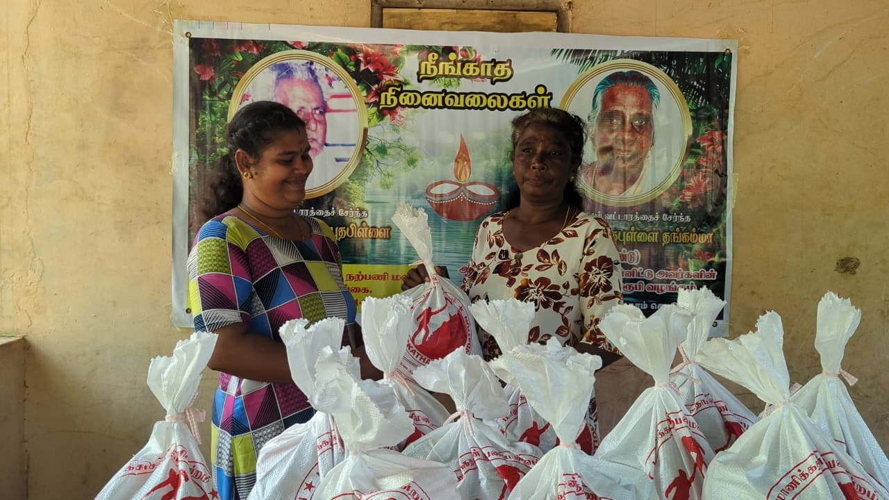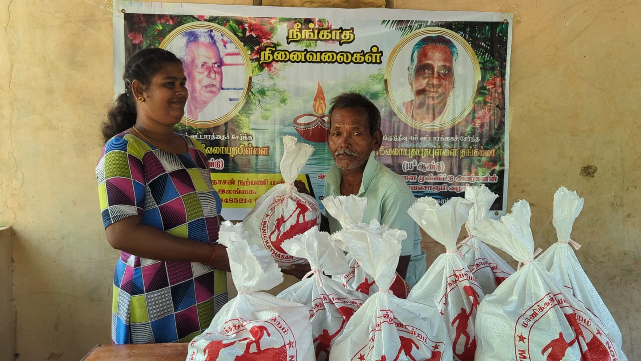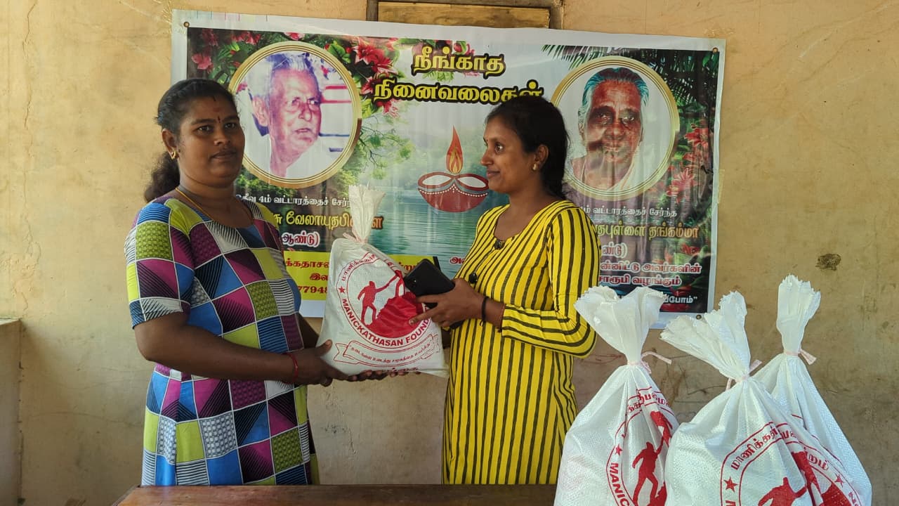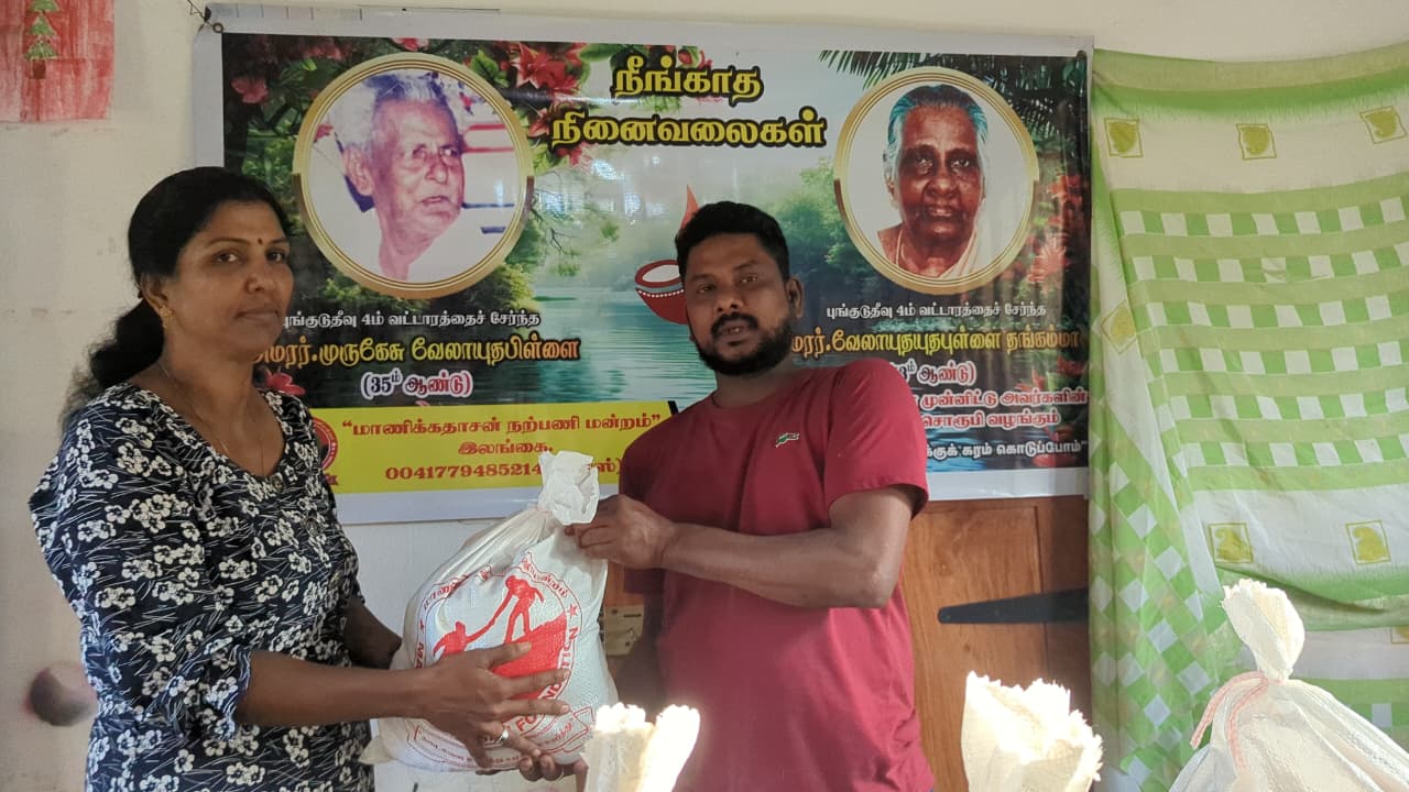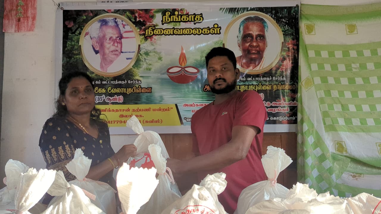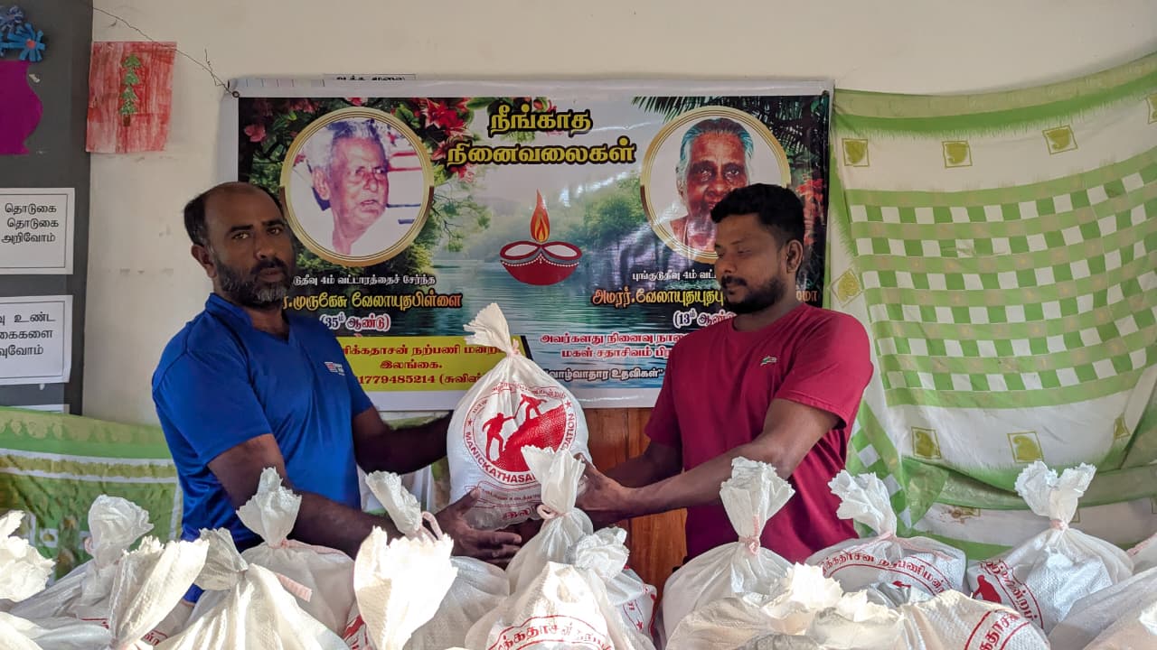 நினைவுநாளை முன்னிட்டும் அன்னாரின் பிள்ளைகள், மருமக்கள், பேரப்பிள்ளைகள் சார்பாக அன்னாரின் மகளும் பிரான்ஸ் நாட்டில் வாழ்பவருமான திருமதி.சதாசிவம் பிரணவசொரூபி அவர்களின் நிதிப் பங்களிப்பில் பெறுமதியான உலருணவுப் பொதிகள் வழங்கும் நிகழ்வு நடத்தப்பட்டது.