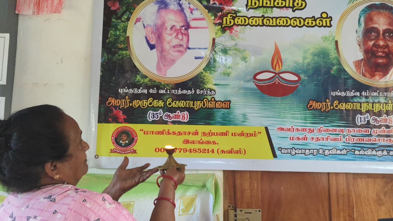 நினைவுநாளை முன்னிட்டும் அவர்களுக்கு முதலில் ஒரு நிமிட மௌன வணக்க அஞ்சலி செலுத்தியதுடன், மலரஞ்சலி செலுத்தப்பட்டு தொடர்ந்து தேவார பாராயணம் பாடப்பட்டு அதனைத் தொடர்ந்து பயனாளிகளுக்குமான உலருணவுப் பொதிகளும் வழங்கப்பட்டது.