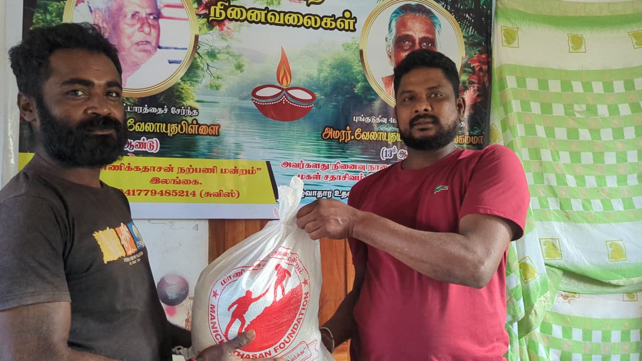 நினைவுநாளை முன்னிட்டும் இரண்டாவது நிகழ்வாக வவுனியா பூவரசன்குளம் கிராம பிரிவில் உள்ள வறுமைகோட்பட்ட 20 பயனாளிக்களுக்கு சமூர்த்தி உத்தியோகத்தர் சுரேந்திரன் சரணியா அவர்கள் கேட்டத்திற்கு அமைய 20பொதிகள் பயனாளிகளுக்கு மாணிக்கதாசன் நற்பணி மன்றத்தின் ஏற்பாட்டில் ஊடகவியலாளர் திரு.வரதராசா பிரதீபன் அவர்கள் நேரிய முறையில் ஒழுங்கமைத்து வழங்கப்பட்டது குறிப்பிடத்தக்கது.