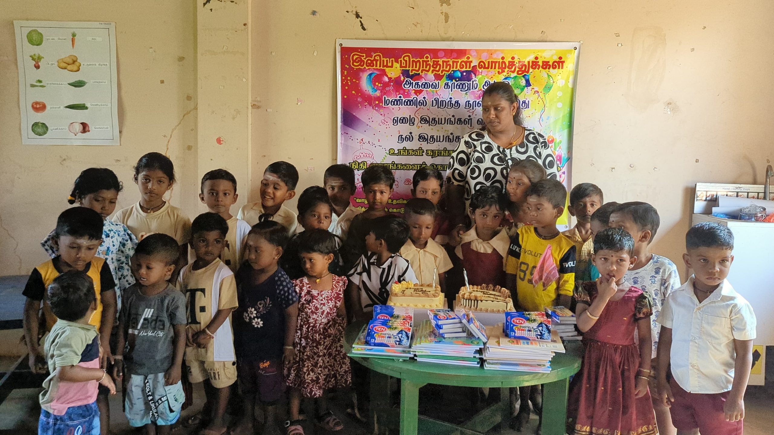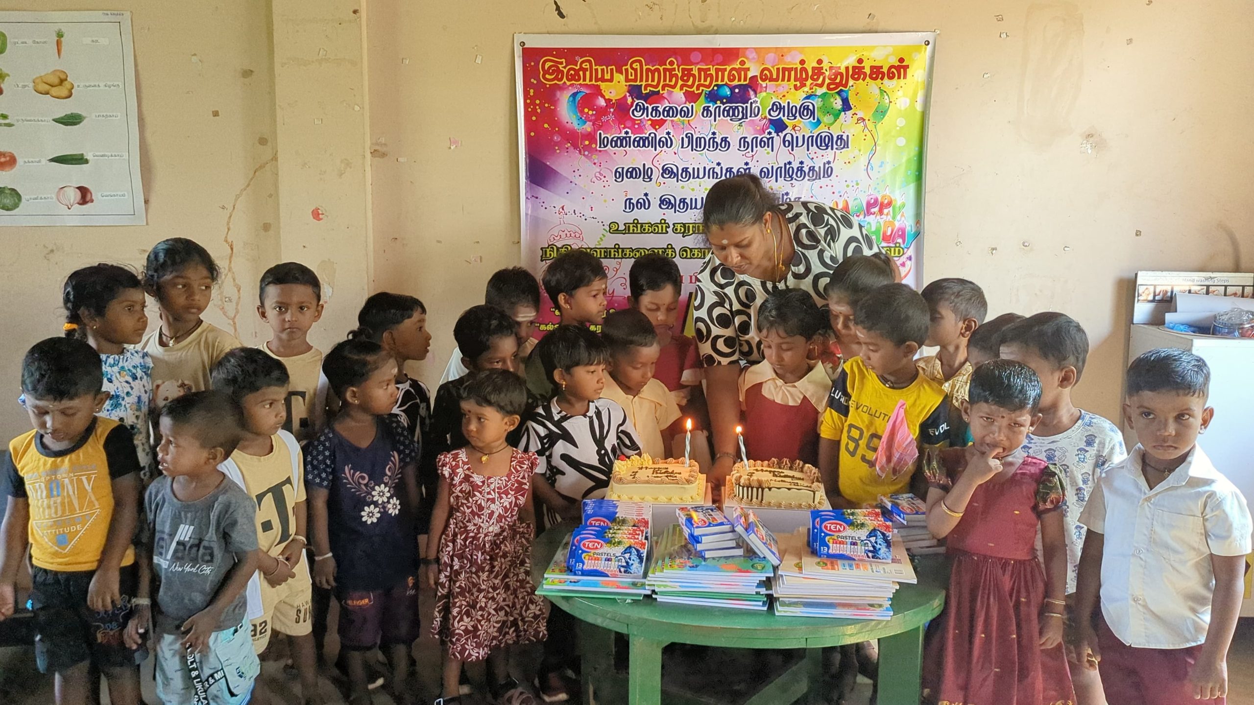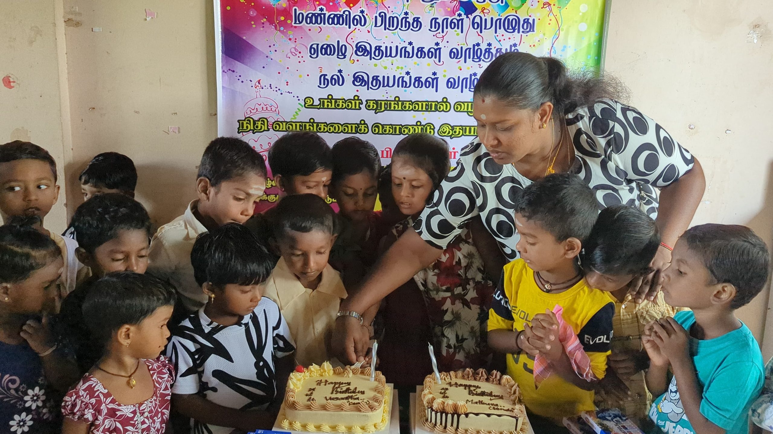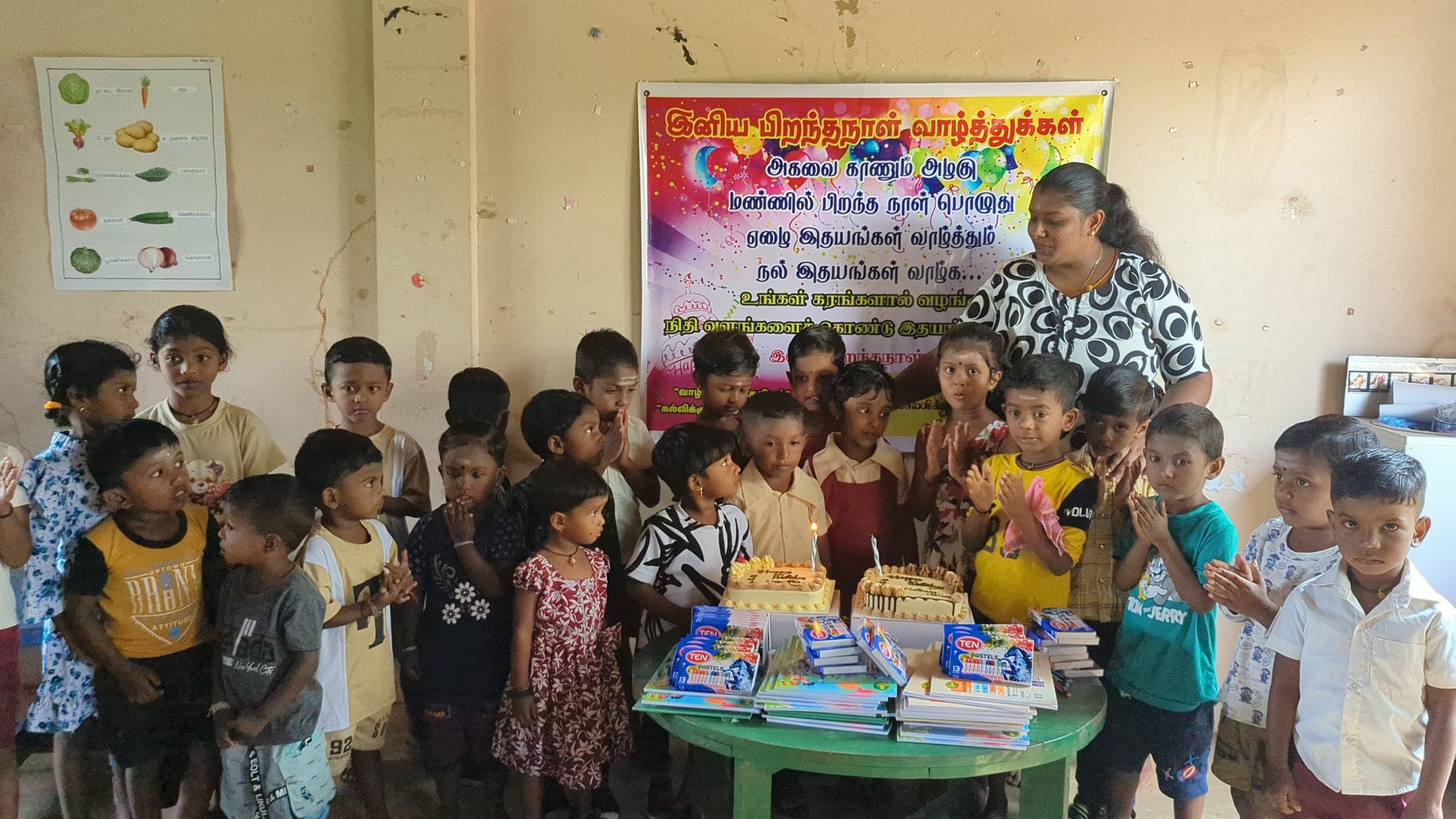 முதல் நிகழ்வாக பாலர் மாணவர்கள், பெற்றோர்கள் கலந்து கொண்டு மதுரா மற்றும் வசந்தா அவர்களுக்கு கேக் வெட்டி பிறந்த நாள் பாட்டுப்பாடி மகிழ்ச்சியாக கொண்டாடப்பட்டது.