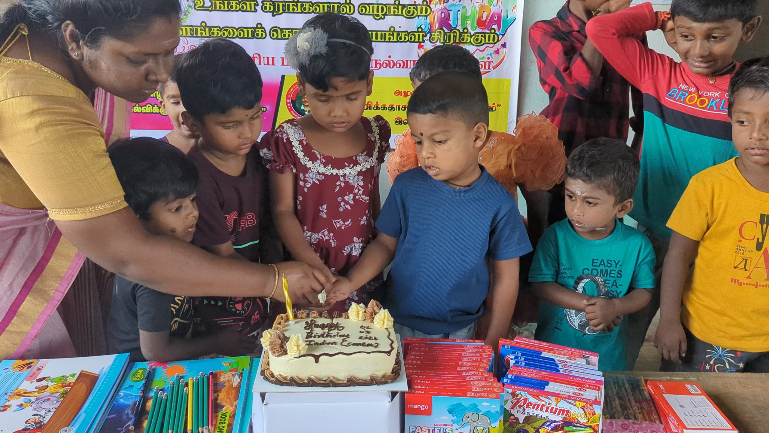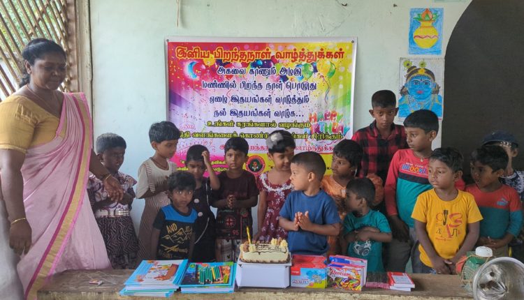 முதல் நிகழ்வாக மாணவ சிறார்களும், பெற்றோர்கள் கலந்து கொண்டு இந்திரன் அவர்களின் சார்பாக கேக் வெட்டி பிறந்த நாள் பாட்டுப்பாடி மகிழ்ச்சியாக கொண்டாடப்பட்டது.