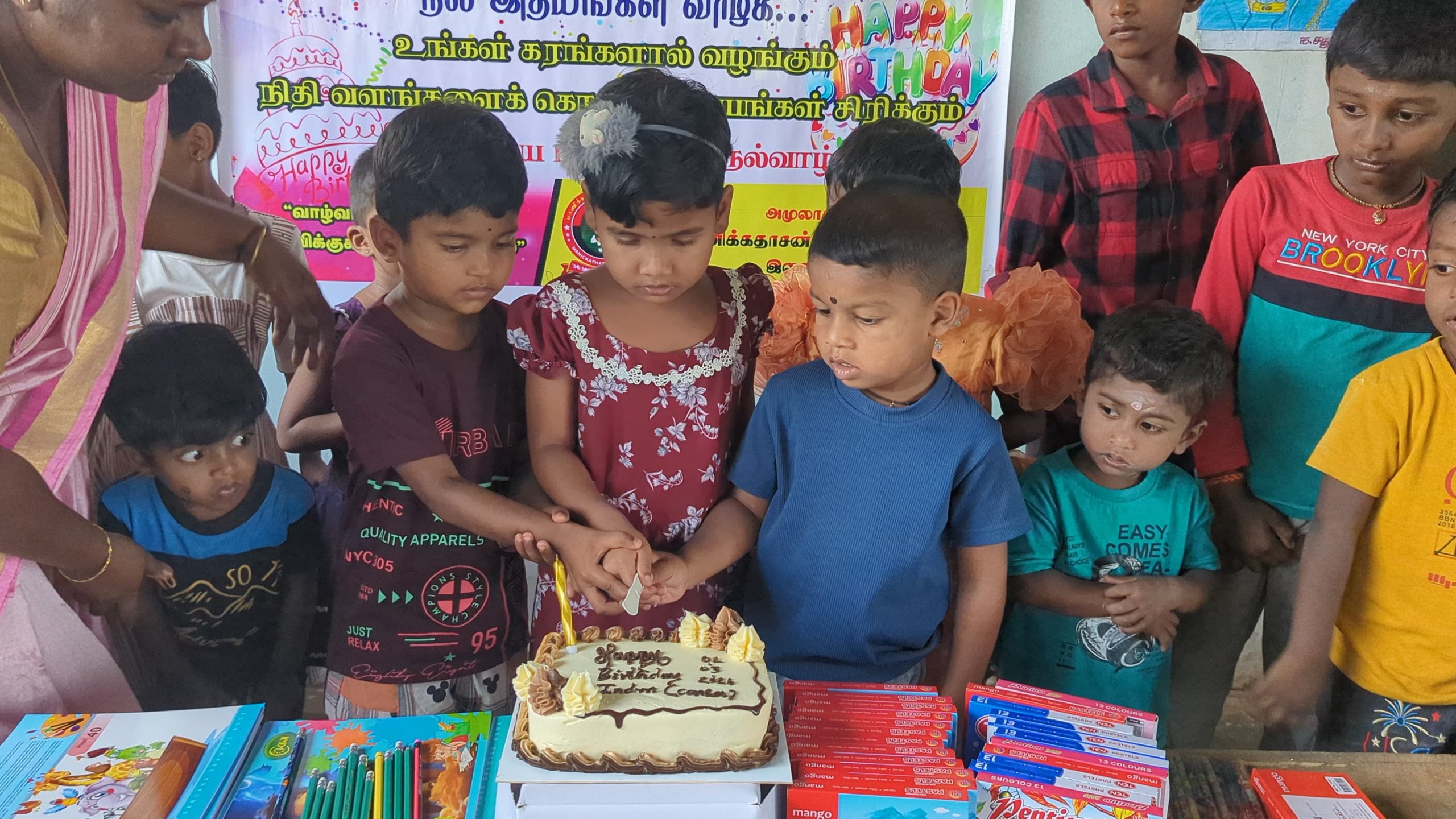 வவுனியாவில் வசிக்கும் அறநெறி வகுப்பு மாணவ மாணவிகள் என பலரும் ஒன்றுகூடி பிறந்தநாளை மகிழ்ச்சியுடன் பிறந்தநாள் பாட்டுப் பாடி கேக்வெட்டி கொண்டாடினார்கள். பிறந்த நாள் கொண்டாட்டத்தில் கலந்து கொண்ட அனைவருக்கும் சிற்றுண்டி வழங்கப்பட்டது. இதனைவிட அக்கிராமத்தில் அறநெறி வகுப்புக்கு செல்லும் மாணவ, மாணவிகளுக்கு கற்றலுக்கு உதவியாக அப்பியாசக் கொப்பிகளும் வழங்கி வைத்ததும் சிறப்பம்சமாகும்.