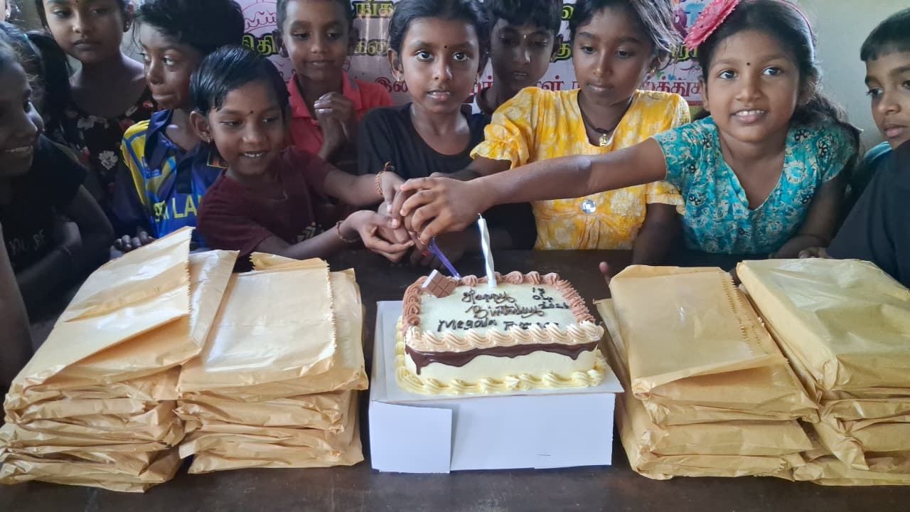 செல்வி. மேகலாவின் பிறந்த தினத்தை முன்னிட்டு வவுனியா எல்லைக் கிராமமொன்றில் உள்ள மாணவ மாணவிகள் அவர்களின் பெற்றோர்கள் “மாணிக்கதாசன் நற்பணி மன்றத்திற்கு” தெரியப்படுத்தியதன் அடிப்படையில் அந்த குழந்தைகளின் தேவையை, தங்கள் மகளின் பிறந்தநாளில் நிறைவேற்றி வைக்கும்படி செல்வி.மேகலாவின் பெற்றோர்களான திரு.திருமதி சஸ்பாநிதி ஜெயக்குமாரி தம்பதிகள் நிதிப்பங்களிப்பு செய்துள்ளார்கள். செல்வி. மேகலா அவர்கள் தனது பெற்றோர், அக்கா கௌசி, தம்பி பாபுஜி ஆகியோருடன் இணைந்து இன்றையதினம் சிறப்பாகக் கொண்டாடினார்.