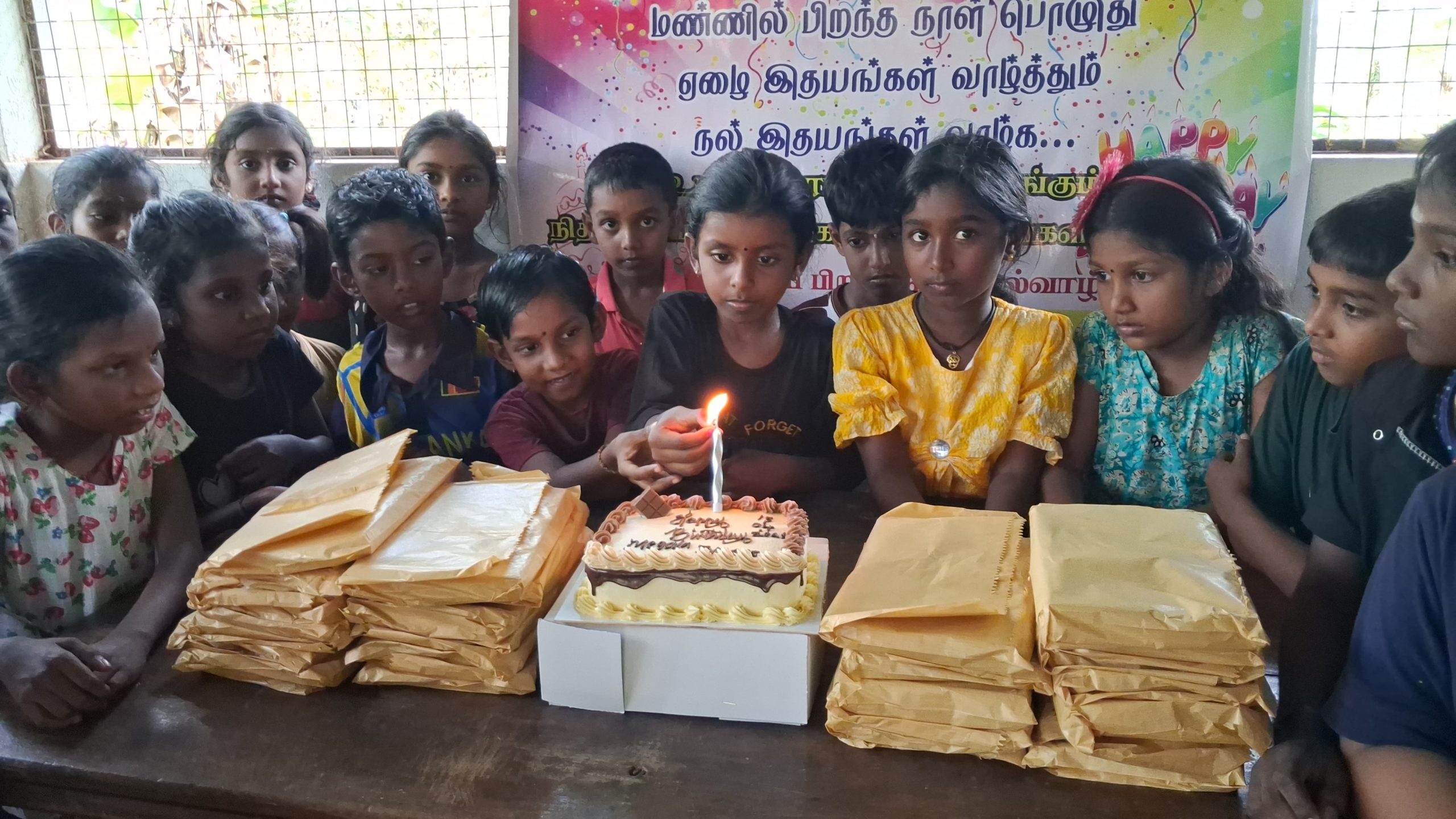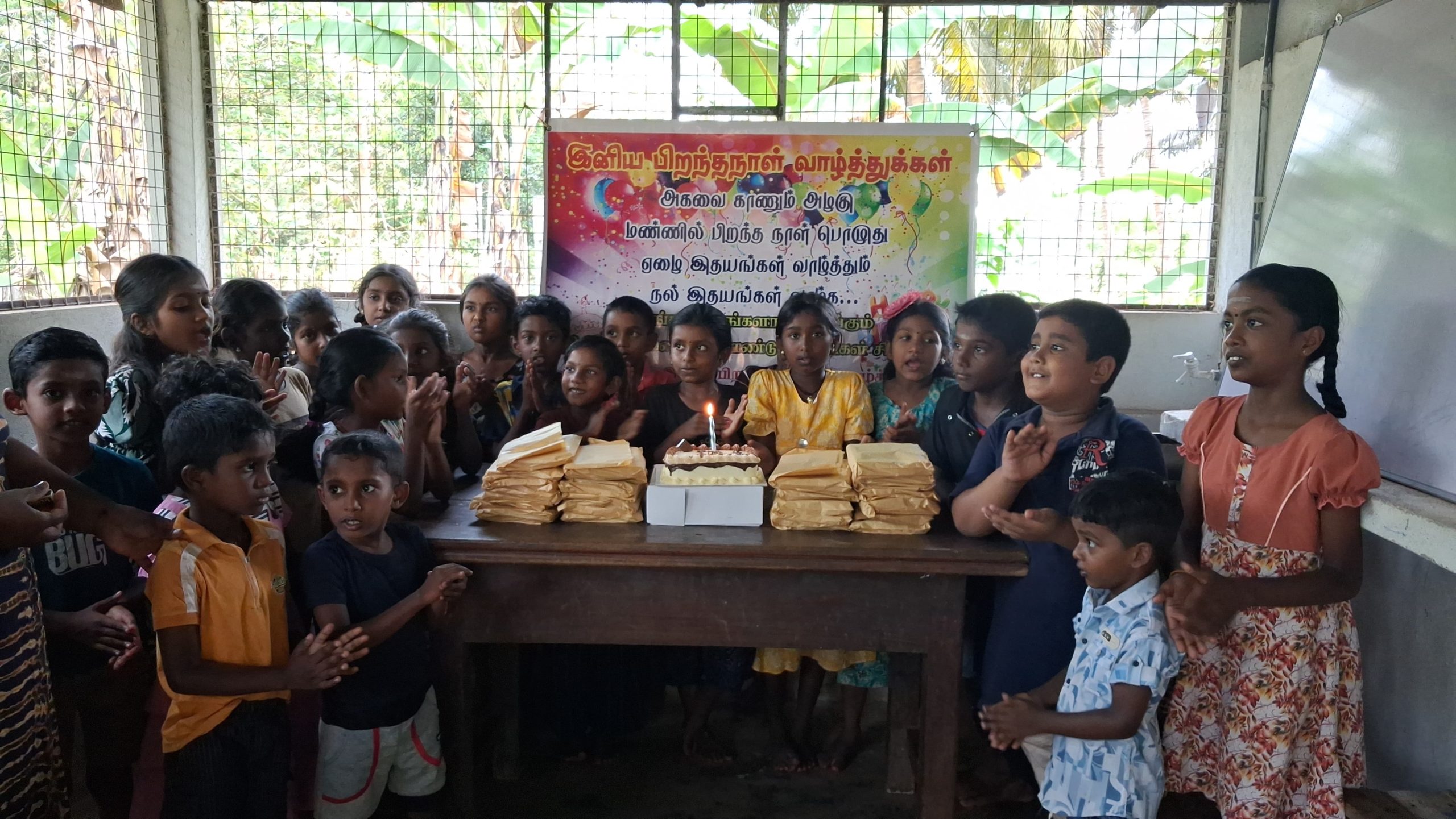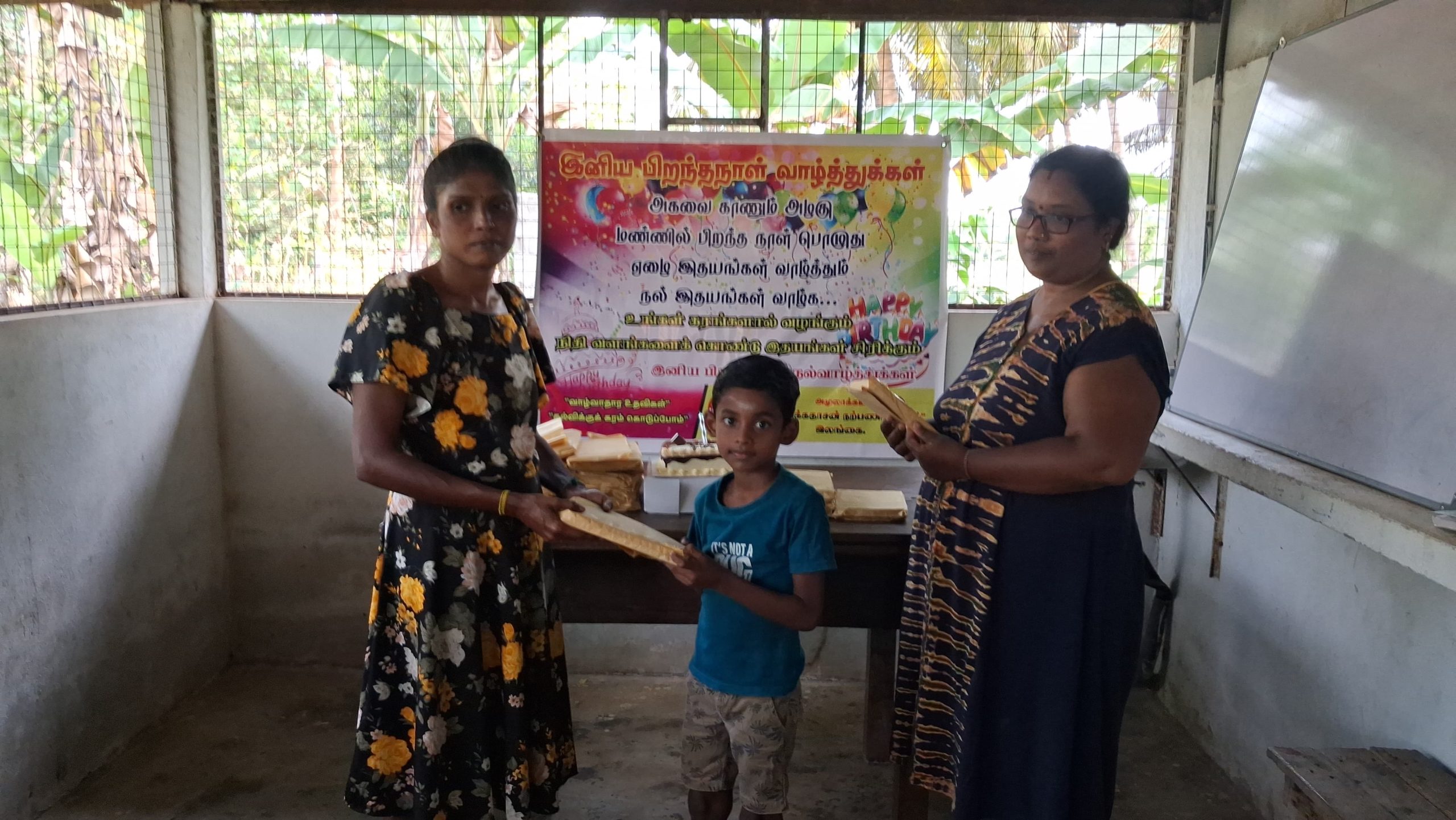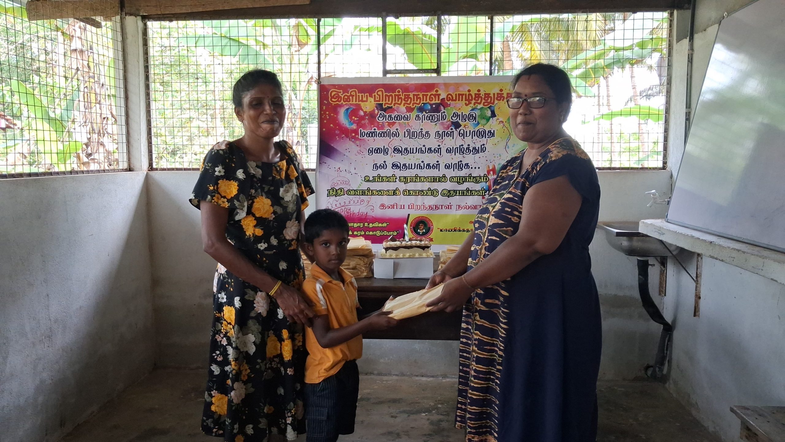 முதல் நிகழ்வாக மாணவ சிறார்களும், பெற்றோர்கள் கலந்து கொண்டு பிரான்சில் வசிக்கும் மேகலா அவர்களின் சார்பாக கேக் வெட்டி பிறந்த நாள் பாட்டுப்பாடி மகிழ்ச்சியாக கொண்டாடப்பட்டது.