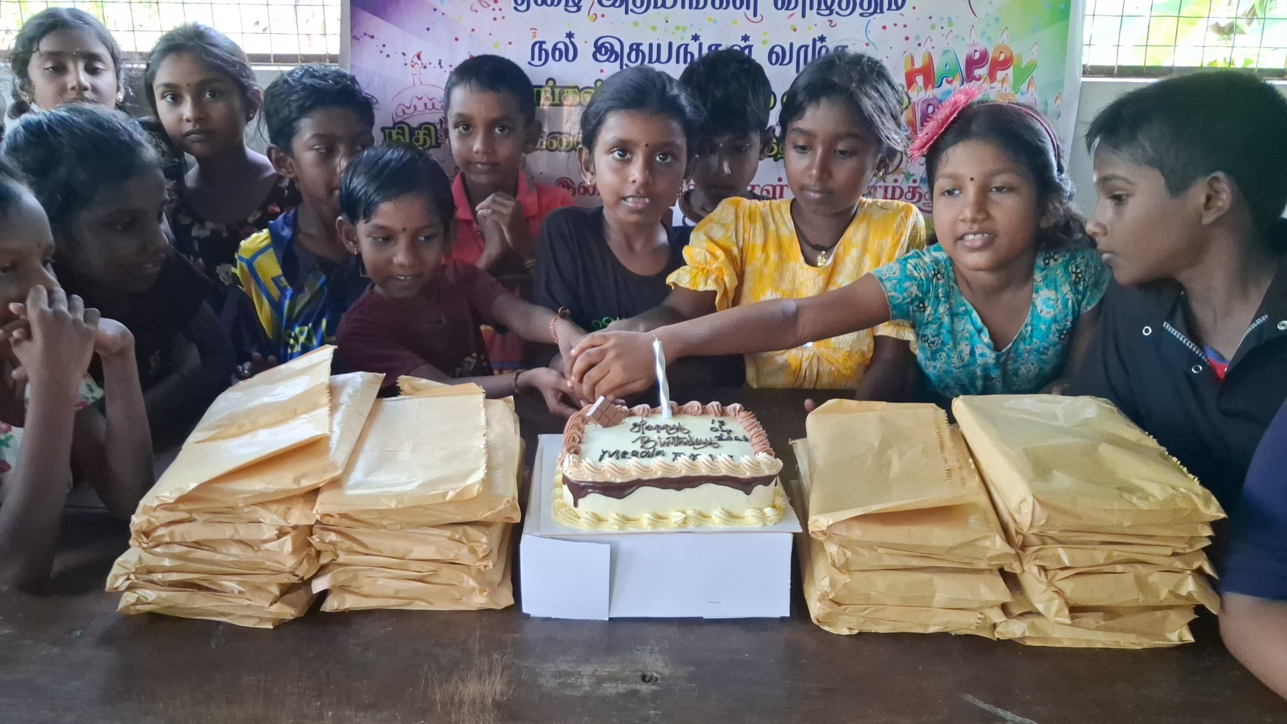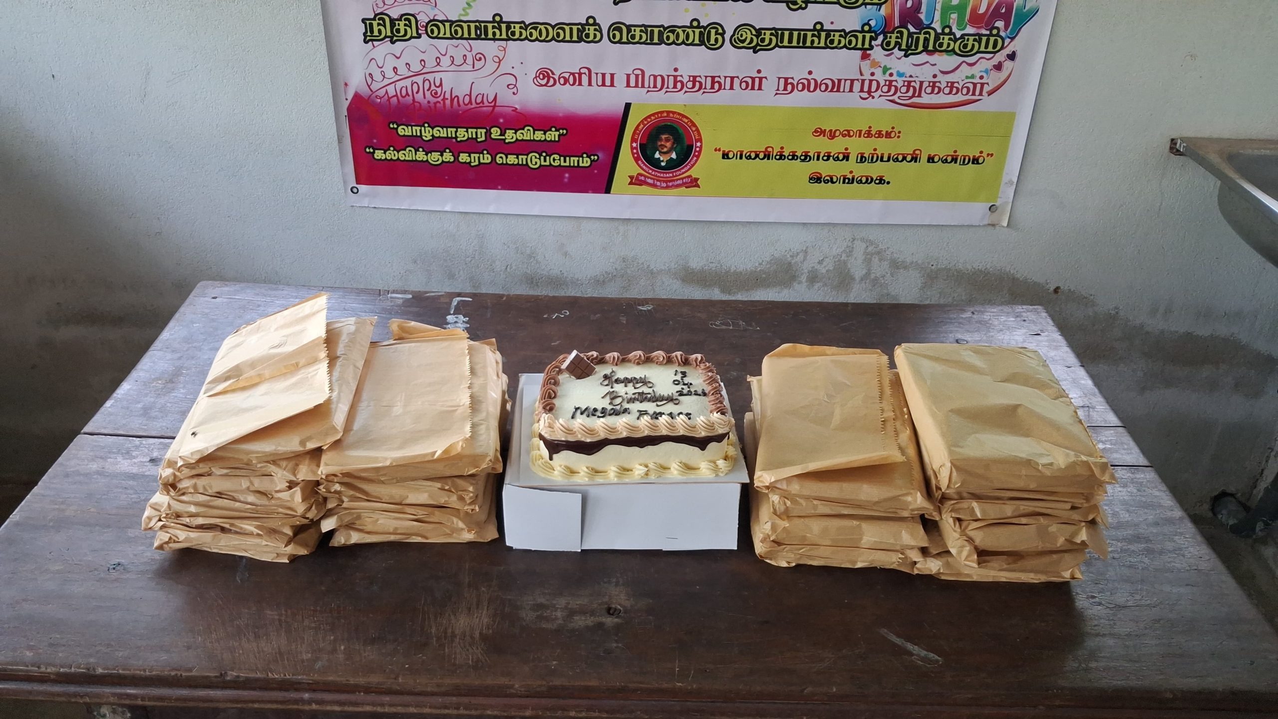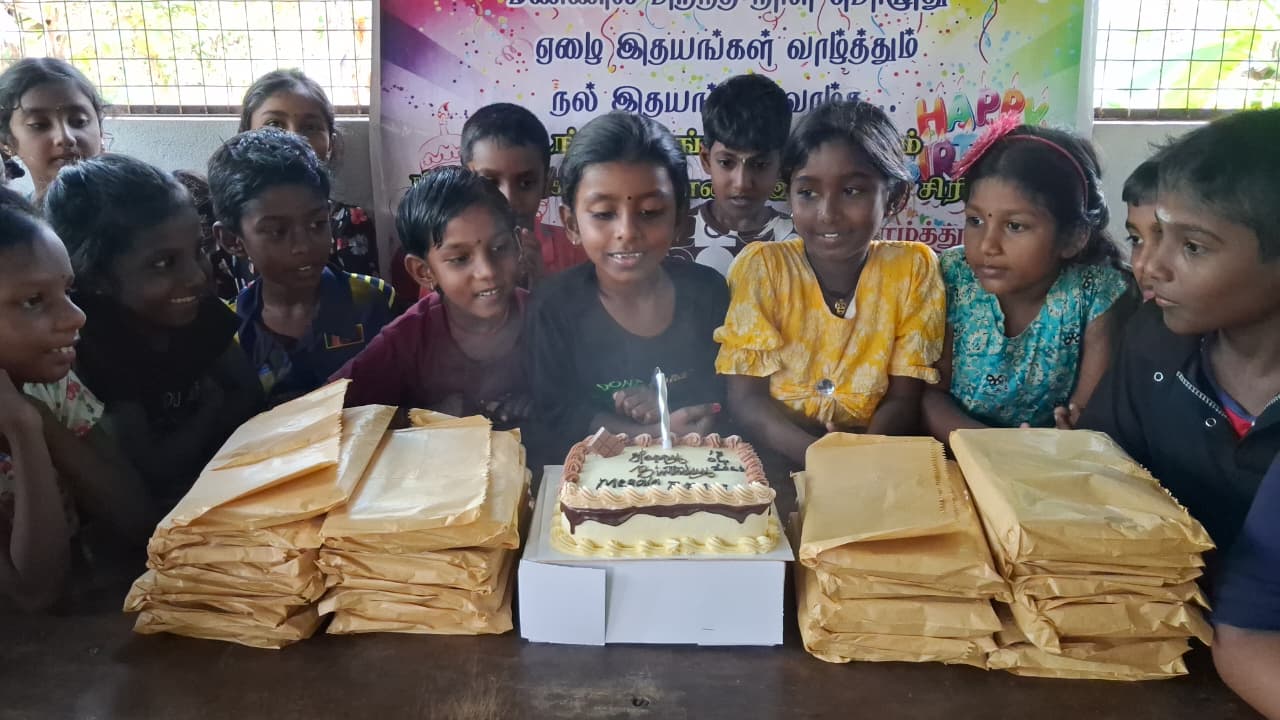 புங்கையூர் தோன்றல்களான அமரர்கள் சொக்கலிங்கம் நாகேஸ் தம்பதிகளின் பரம்பரையின் பொக்கிசங்களில் ஒருவரும், பிரான்ஸ் நாட்டில் வசிப்பவர்களான திரு.திருமதி. சஸ்பாநிதி ஜெயக்குமாரி தம்பதிகளின் செல்வப் புதல்விகளில் ஒருவரான செல்வி.மேகலா அவர்களின் பிறந்தநாளினை முன்னிட்டு, அவர் விரும்பிக் கேட்டுக் கொண்ட வகையில் மாணவ மாணவிகளான சிறுவர்களுடன் இணைந்து இனிய பிறந்தநாள் கொண்டாட “மாணிக்கதாசன் நற்பணி மன்றம்” ஏற்பாடு செய்தது.