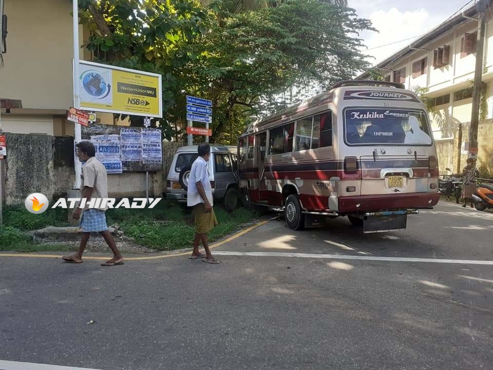 யாழ் வேம்படி வீதி 1ம் குறுக்குத் தெரு பகுதியில் தனியார் பேருந்தும், விவசாயத் திணைக்களத்துக்குச் சொந்தமான வாகனமும் மோதி விபத்துக்குள்ளாகியுள்ளன.