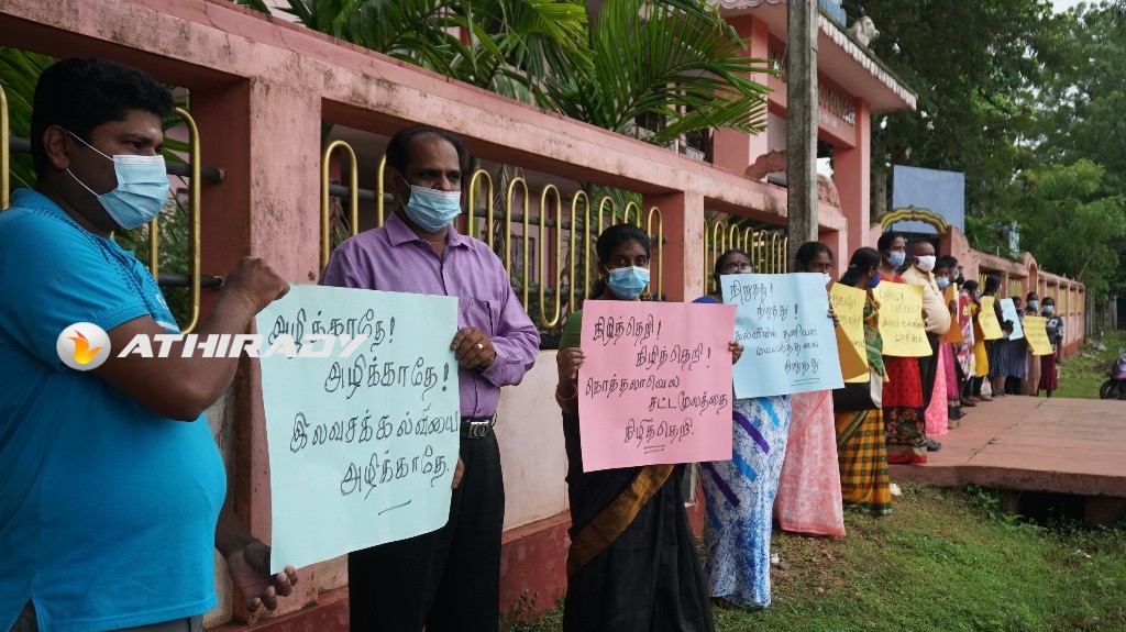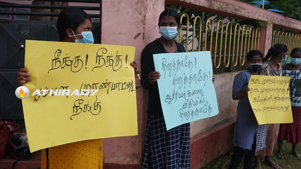 ஆசிரியர் நலன்புரிச் சங்கத்தின் தலைவர் க.கனேந்திரன் தலைமையில் கவனயீர்ப்பு போராட்டம் முன்னெடுக்கப்பட்டது.