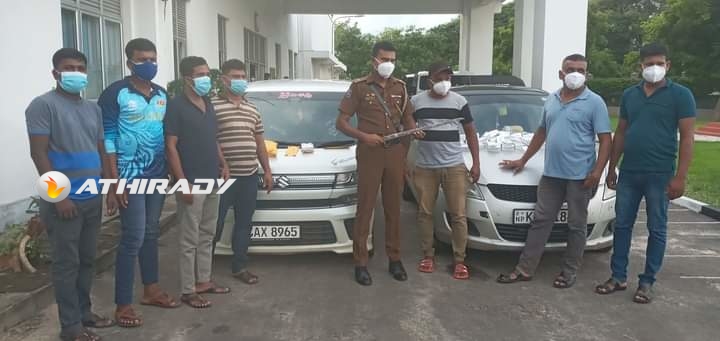 அதனை அடுத்து இரு கார்களிலும் பயணித்த யாழ்.நகர் பகுதியை சேர்ந்த ஒருவரையும் , கொழும்பை சேர்ந்த ஒருவரையும் கைது செய்தனர்.