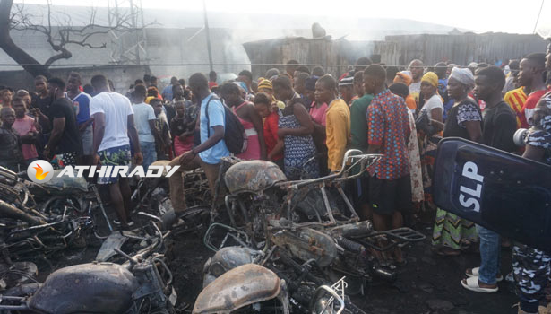 ஆப்ரிக்காவின் மேற்கு பகுதியில் உள்ள லியோனின் தலைநகரில் பெட்ரோல் பங்கில் டேங்கர் லாரி மோதி ஏற்பட்ட தீ விபத்தில் 91 பேர் பலியாகி உள்ளதாகவும் 100-க்கும் மேற்பட்டோர் காயமடைந்துள்ளதாக தகவல்கள் தெரிவிக்கின்றன. பெட்ரோல் பங்க் அருகே நடந்த இந்த விபத்தினால் தீப்பிடித்து அங்குள்ள பெட்ரோல் சேமிப்பு கிடங்கு வெடித்துள்ளதாக தகவல்கள் தெரிவிக்கின்றன.