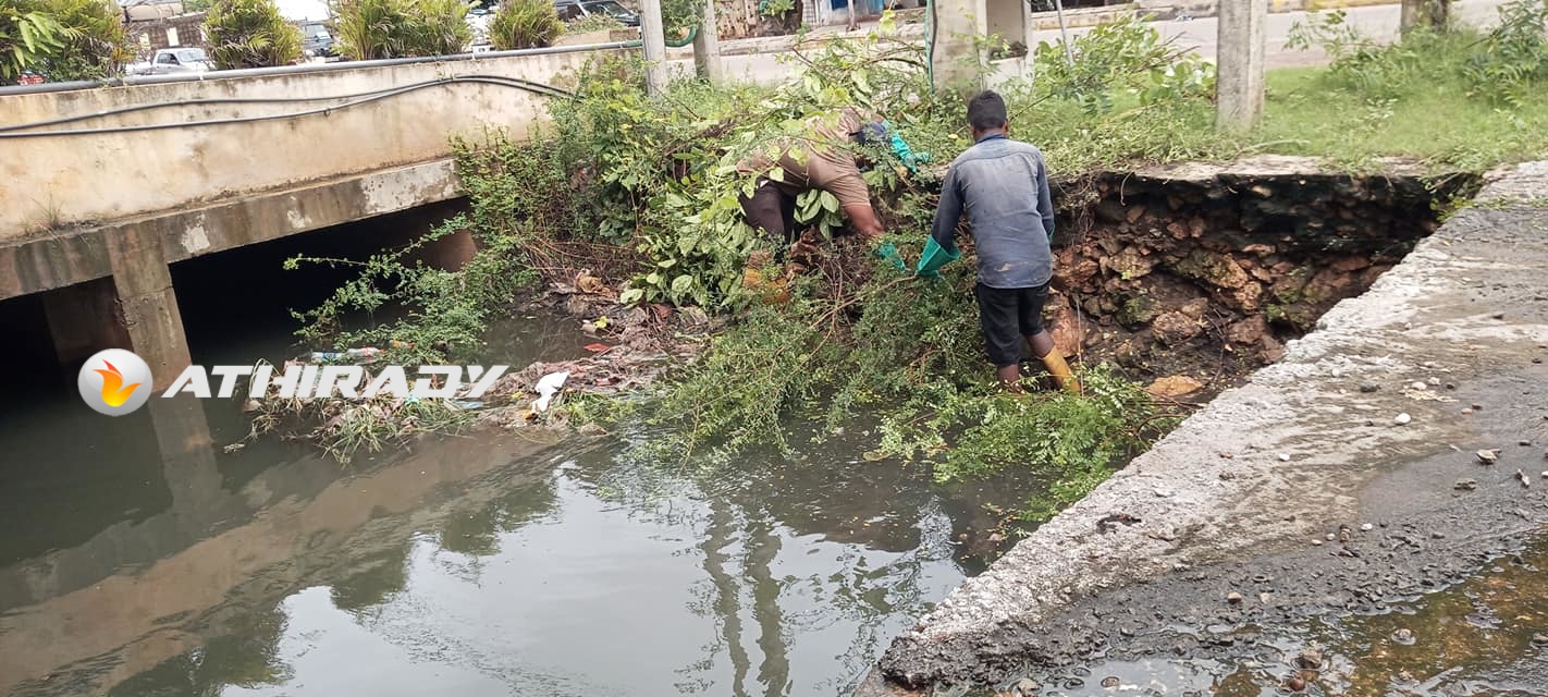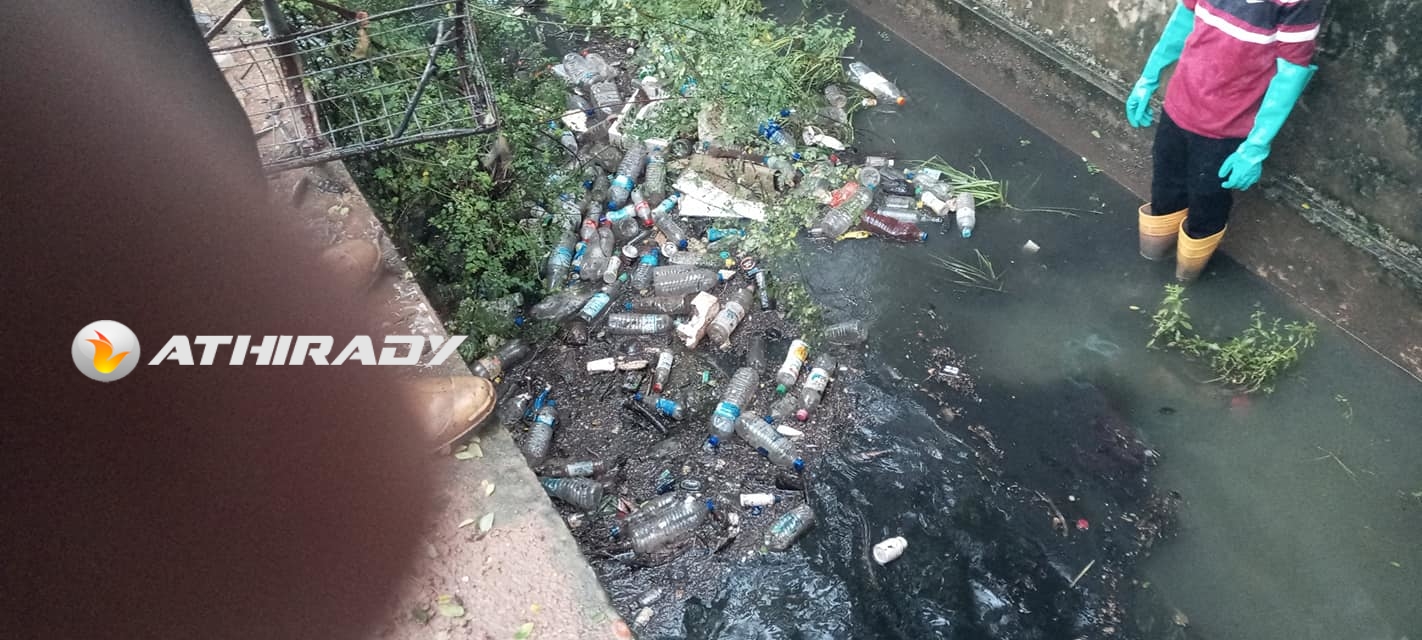 எதிர்வரும் நாட்களில் கடும் மழை காரணமாக ஏற்படும் வெள்ளப்பெருக்கினைக் குறைக்கும் முகமாக கடந்த கடும் மழை காரணமாக பிரதான வெள்ள வடிகாலுக்குள் வந்து சேர்ந்த பிளாஸ்ரிக் போத்தல்கள், தடிகள் மற்றும் பிரதான வெள்ள வடிகாலினுடான சீராக வெள்ளநீர் வடிந்தோடும் வகையில் அதனை தடைசெய்யும் காரணிகளை இனங்கண்டு அவற்றினை அகற்றும் செயற்பாடுகளை யாழ்.மாநகர சபை மேற்கொண்டது.