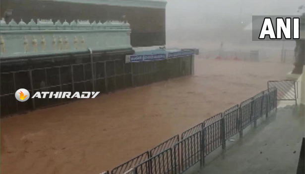 ஏழுமலையான் கோவில் முன் மழை வெள்ளம்
