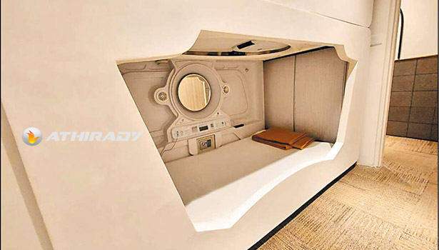 சிறிய கூண்டு போன்ற இதன் அறைகளில் படுத்து தூங்கும் அளவுக்கும், உட்கார்ந்து இருக்கும் அளவுக்கும் இடம் இருக்கும்.