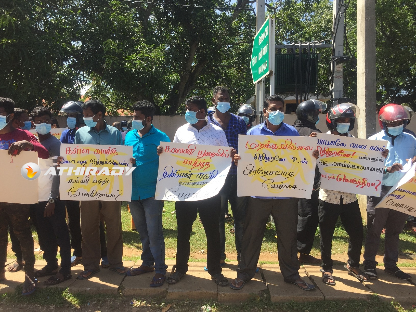 தமிழ் தேசியக் கூட்டமைப்பின் நாடாளுமன்ற உறுப்பினர் சிறிதரன் அவர்களுக்கு எதிராக ‘கள்ளவாக்கு சிறிதரனே கல்வியைப் பற்றி பேசாதே’ எனக் கோசம் எழுப்பியவாறு வவுனியாவில் கண்டன ஆர்ப்பாட்டம் ஒன்று இடம்பெற்றது.