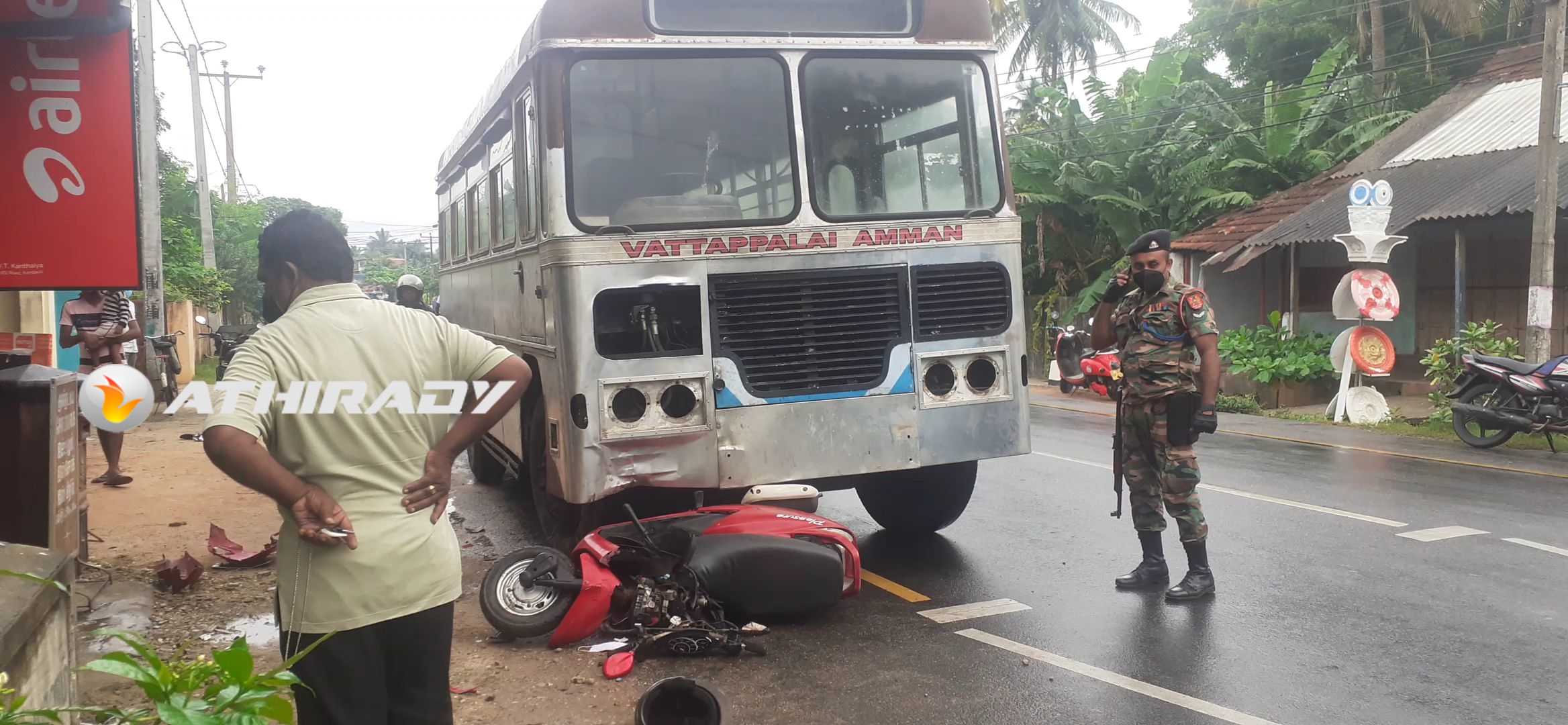 தாவடி சந்தியில் இலக்கத் தகடு அற்ற பேரூந்து மோதியதில் பாடசாலை மாணவி உட்பட இருவர் படுகாயம்!! (வீடியோ, படங்கள்)