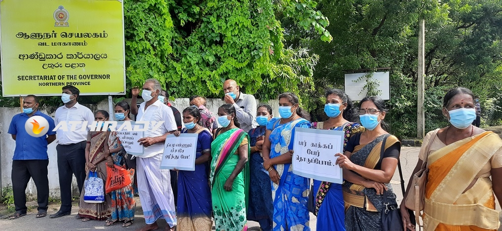 ‘நிலத்தை பறிப்பதும் எம் உயிரைப் பறிப்பதும் ஒன்றே’ – வடக்கு ஆளுநர் அலுவலகம் முன் போராட்டம்!!