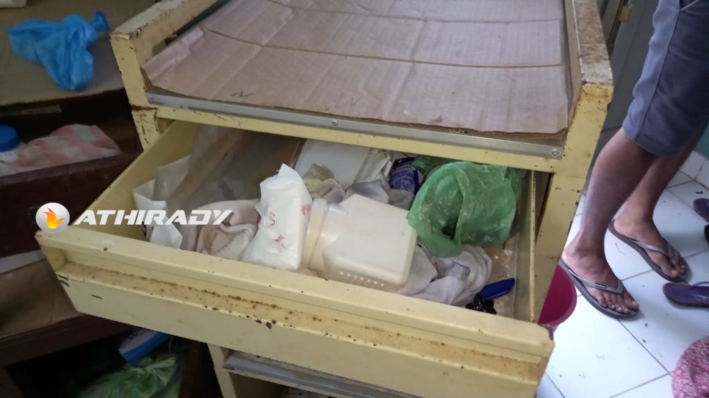 திருட்டுச் சம்பவம் இடம்பெற்ற அன்று இரவு மருத்துவமனைக் காவலாளி, நோயாளர் காவு வண்டிச் சாரதி மற்றும் பணியாளர்கள் இருவர் இருந்ததாகவும் மருத்துவ அதிகாரி தெரிவித்தார்.