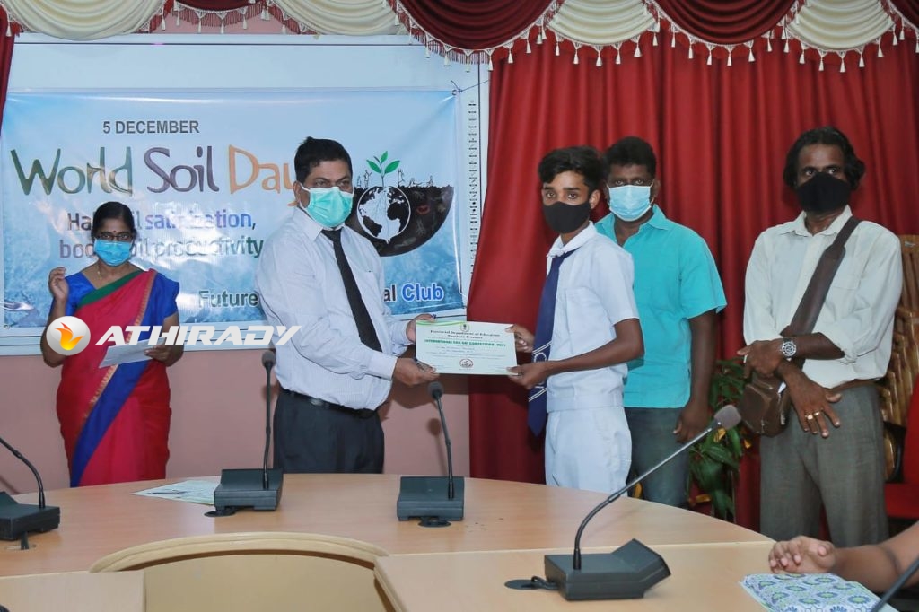 உலக மண் தினத்தினை முன்னிட்டு, எதிர்காலத்தை நோக்கி சுற்று சூழல் கழகமும் மாகாண கல்வி திணைக்களமும் இணைந்து நடத்திய பொது அறிவுப்போட்டியில் வெற்றி பெற்ற மாணவர்களுக்குரிய பரிசளிப்பு நிகழ்வு இன்று (07) மாலை நடைபெற்றது.