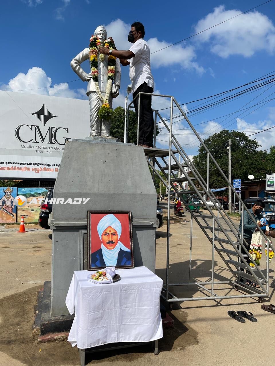 யாழ்ப்பாணம் நல்லூர் அரசடி சந்தியில் அமைத்து பாரதியாரின் திருவுருவ சிலைக்கு இந்திய துணைத்தூதரக , துணைத்தூதுவர் ராகேஷ் நட்ராஜ் மாலை அணிவித்து மலர் தூபி மரியாதை செலுத்தினார்.