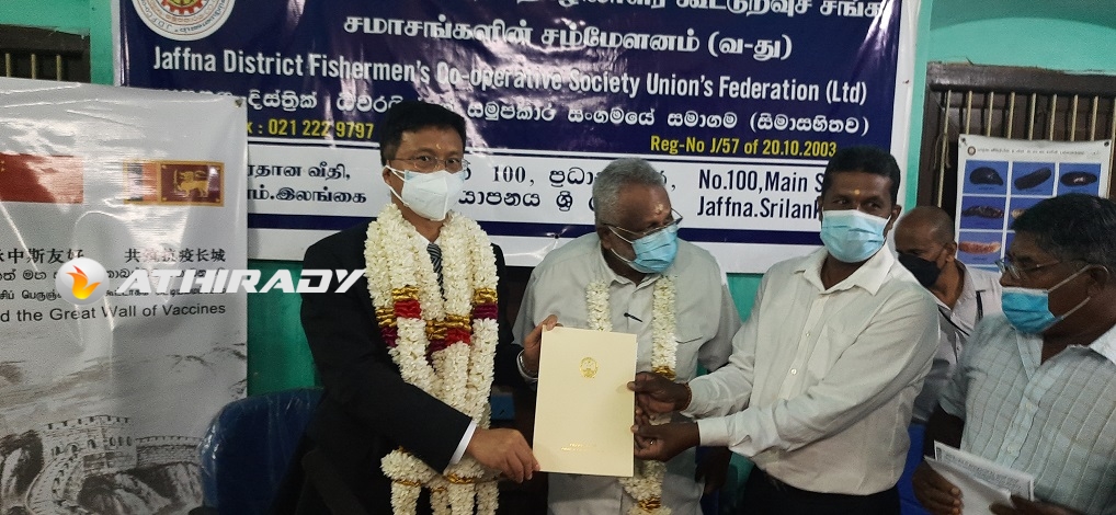 இலங்கைக்கான சீனத் தூதுவரின் அழைப்பினை ஏற்று, யாழ். மாவட்ட கடற்றொழிலாளர் சம்மேளனத்தில் நடைபெற்ற குறித்த நிகழ்வில் கடற்றொழில் அமைச்சர் டக்ளஸ் தேவானந்தா கலந்து கொண்டு உதவித் திட்டங்களை பயனாளர்களுக்கு வழங்கி வைத்தார்.