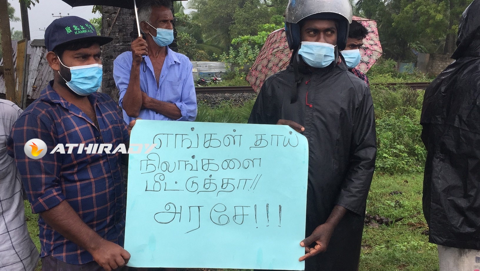 எனவே அதனை தடுத்து நிறுத்தி அக் கிராமத்தில் வாழ்வாதாரத்திற்காக காணிகளற்ற மக்களுக்கு அதனை வழங்க அதிகாரிகளும், மக்கள் பிரதிநிதிகளும் நடவடிக்கை எடுக்க வேண்டும் என தெரிவித்து ஆர்ப்பாட்டத்தில் ஈடுப்பட்டுள்ளனர்.