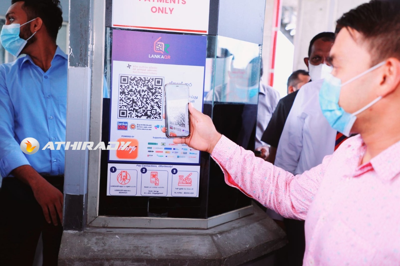 அதிவேக நெடுஞ்சாலை வெளியேறும் வாயிலில் Lanka QR நடமாடும் செலுத்தல் செயலியை பயன்படுத்தி பணப்பரிமாற்றம் செய்யும் நிகழ்வு இன்று 21-12-2021 கொட்டாவ இடைபரிமாற்ற மத்திய நிலையத்தில் நெடுஞ்சாலைகள் அமைச்சர் கௌரவ ஜோன்ஸ்டன் பெர்னாண்டோ மற்றும் இளைஞர் மற்றும் விளையாட்டு அமைச்சர் நாமல் ராஜபக்ஷ ஆகியோரின் தலைமையில் இடம்பெற்றது. .மத்திய வங்கி ஆளுனர் அஜித் நிவாட் கப்ரால், நெடுஞ்சாலைகள் அமைச்சின் செயலாளர் மற்றும் வீதி அபிவிருத்தி அதிகார சபையின் அதிகாரிகள் இந்த விழா நிகழ்வில் கலந்துகொண்டனர்.