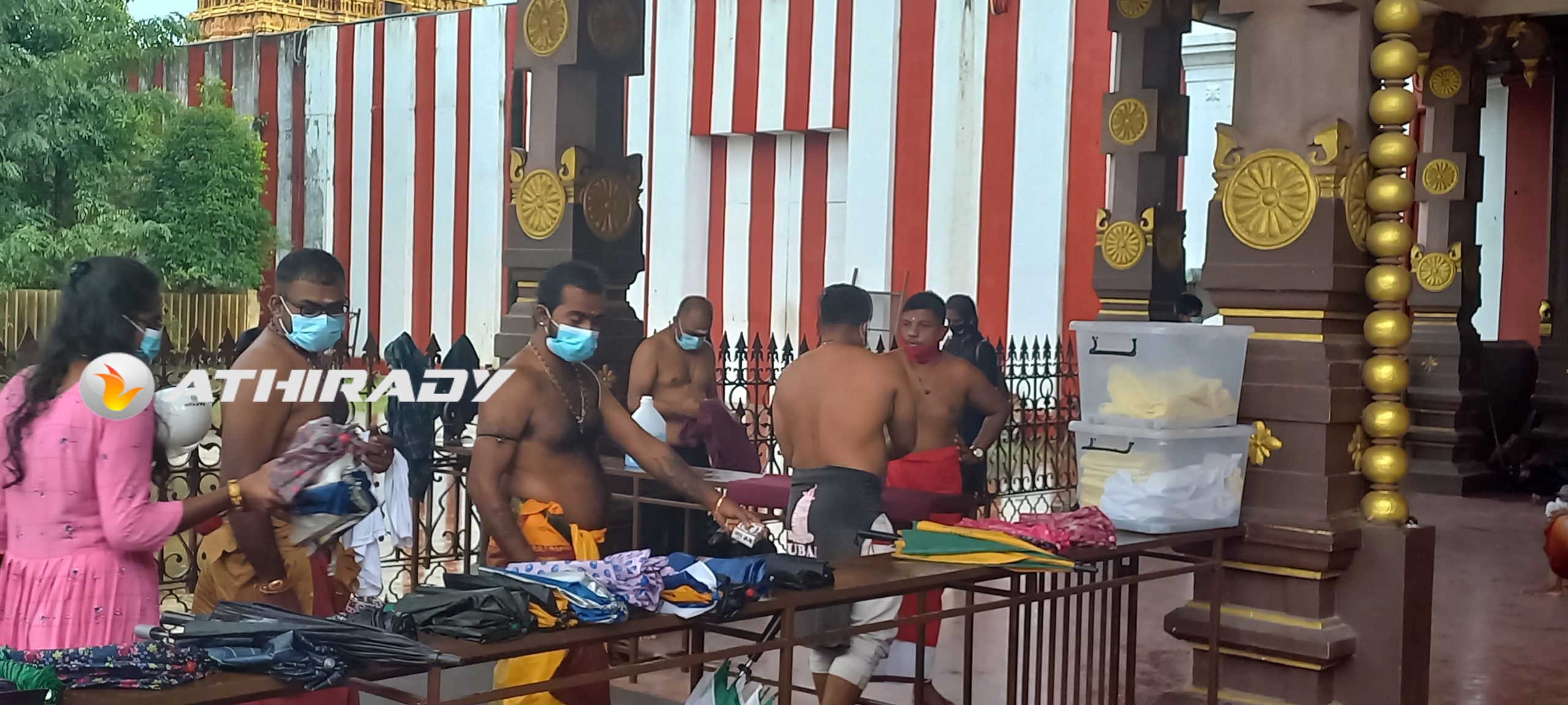 அரைக் காற்சட்டை அணிந்து வரும் ஆண்கள் மற்றும் முழங்கால் தெரியும் வகையில் ஆடை அணிந்து வரும் பெண்களுக்கு ஆலய முகப்பில் சால்வை வழங்கப்படும் நடைமுறையே இன்று அறிமுகப்படுத்தப்பட்டது.