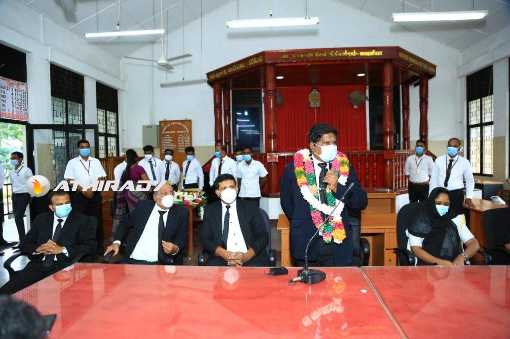 அவருக்கு வவுனியா நீதிமன்றங்களின் உத்தியோகத்தர்கள் மற்றும் சட்டத்தரணிகள் அமோக வரவேற்பளித்தனர்.
