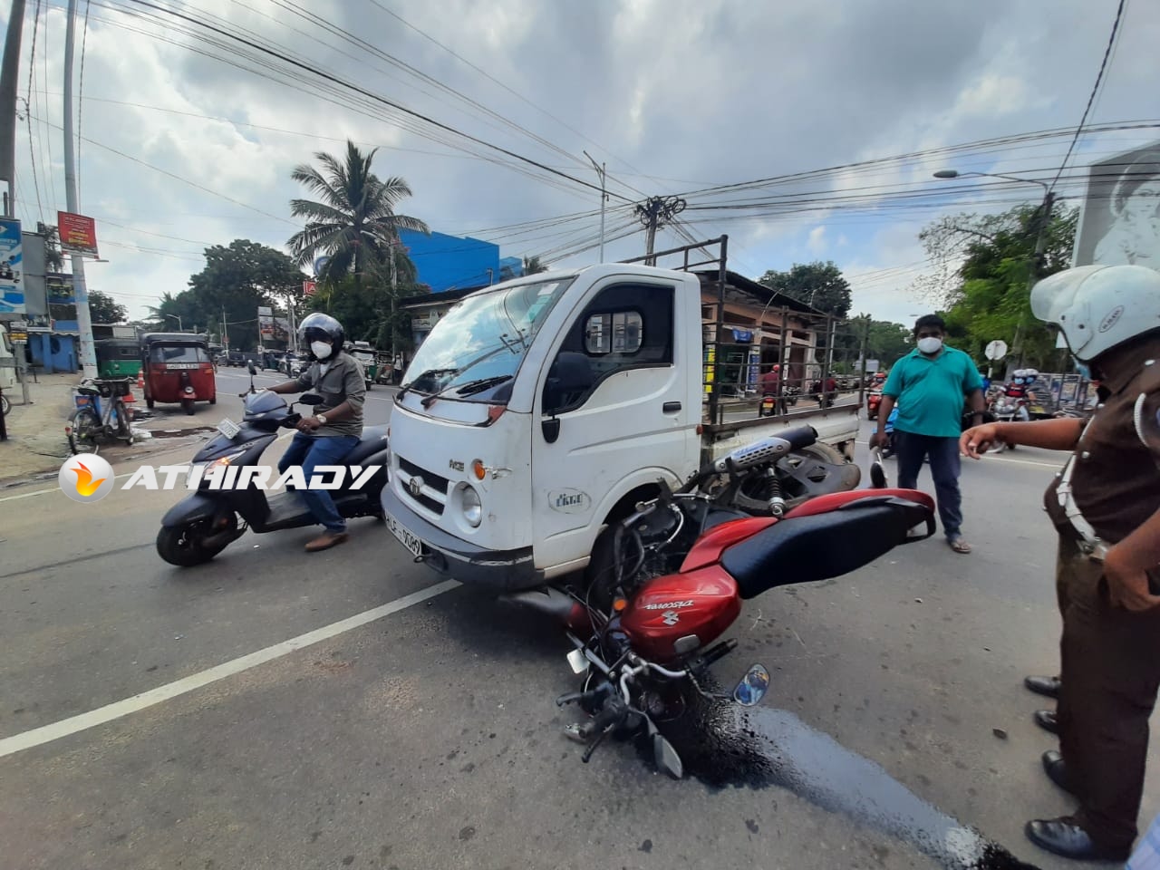 பலாலி வீதியில் பயணித்த பட்டா ரக வாகனத்துடன், நாவலர் வீதியிலிருந்து, பலாலி வீதிக்கு ஏற முற்பட்ட மோட்டார் சைக்கிள் மோதி விபத்துக்குள்ளாகியுள்ளது.