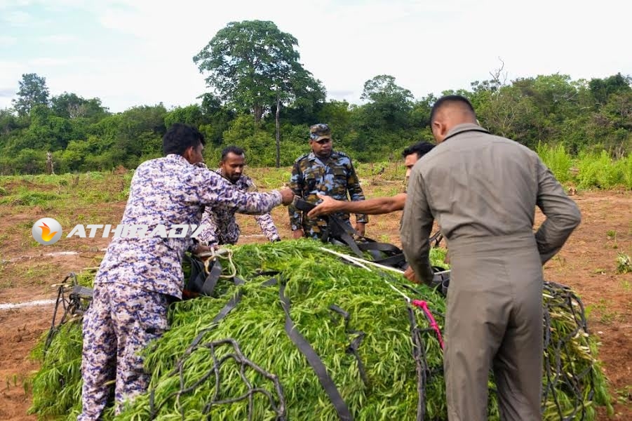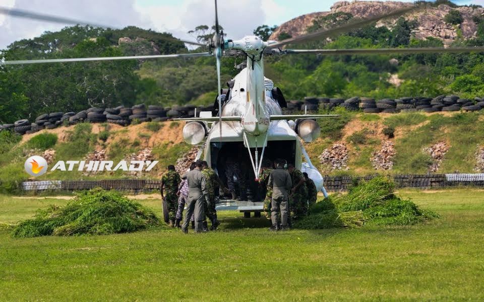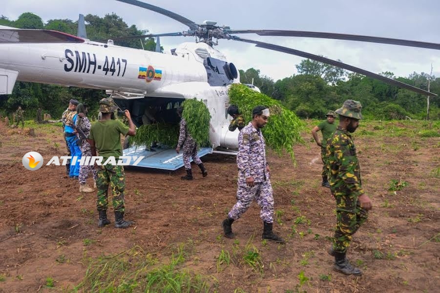 விமானம் மூலம் கண்காணிக்கப்பட்டு கைப்பற்றப்பட்ட பெருந்தொகை கஞ்சாவிலிருந்து சுமார் 6 மெட்ரிக் தொன் கஞ்சா விமானப்படை ஹெலிகொப்டர் மூலம் எடுத்துச் செல்லப்பட்டது.