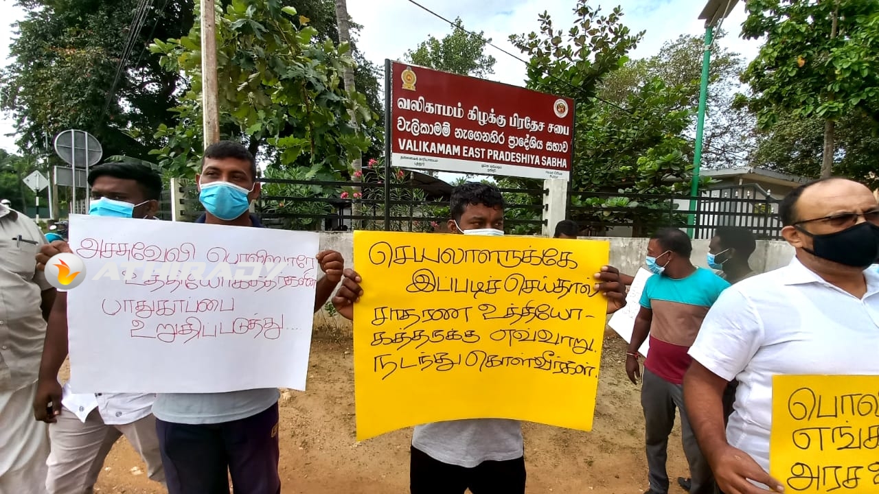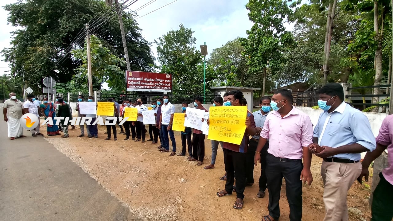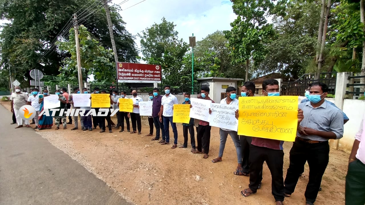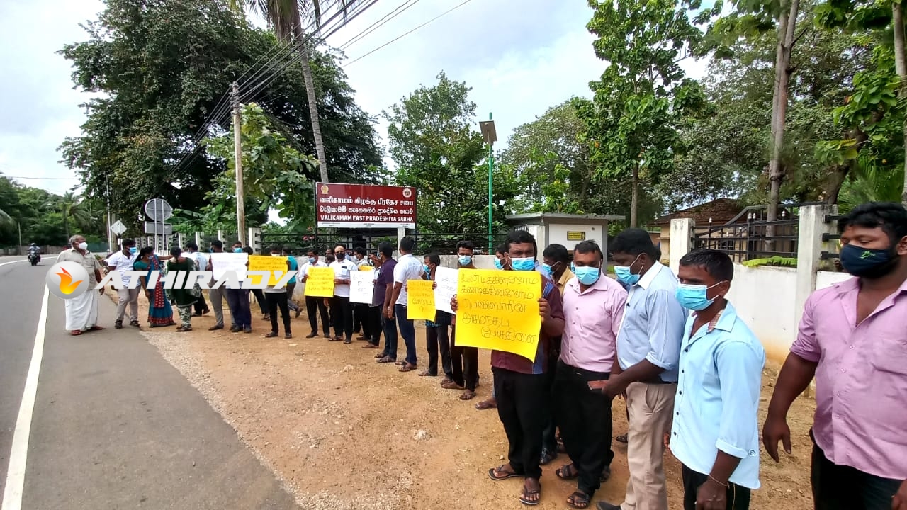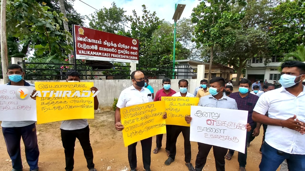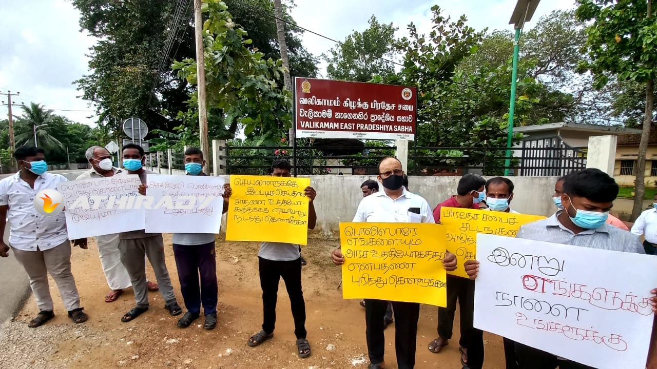 யாழ்ப்பாணம் – வலிகாமம் கிழக்கு பிரதேச சபை முன்றலில் கவனயீர்ப்பு போராட்டம்!! (படங்கள், வீடியோ)