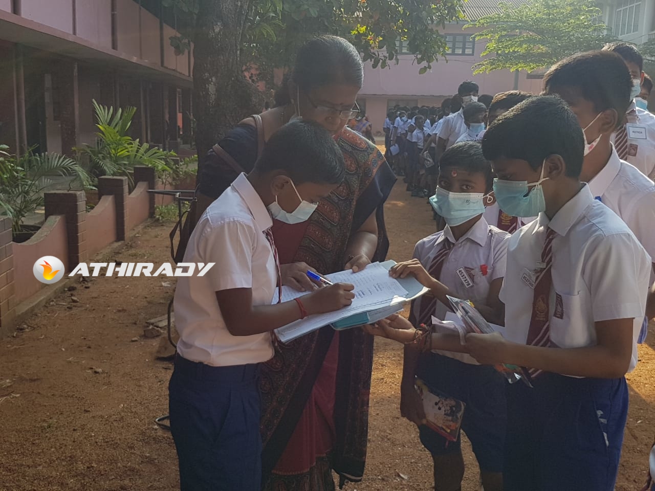 மேலும் பரீட்சைக்கு செல்லும் மாணவர்களுக்கு முகக்கவசம் கட்டாயமாக்கப்பட்டுள்ளதுடன் கைச்சுத்தம் , உடல் வெப்பநிலை என்பன பார்வையிடப்பட்டிருந்தது.