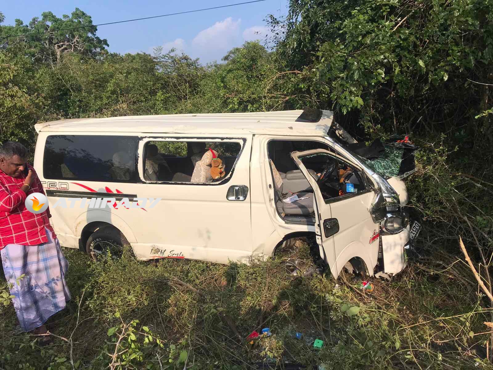 ஏ9 வீதியில் சாரதியின் கட்டுப்பாட்டை இழந்து ஹயஸ் வாகனம் விபத்து; ஒருவர் காயம்!! (படங்கள்)