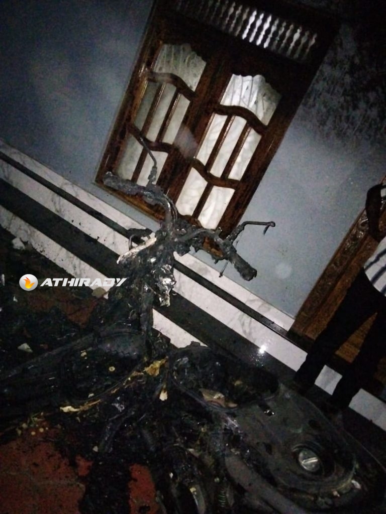இச்சம்பவத்தில் காருக்கு வைக்கப்பட்ட தீ பெரியளவில் பரவாத நிலையில், கார் சேதமடைந்துள்ளத்துடன் மோட்டார் சைக்கிள் இரண்டும் முற்றாக தீயில் எரிந்து நாசமாகியுள்ளது.