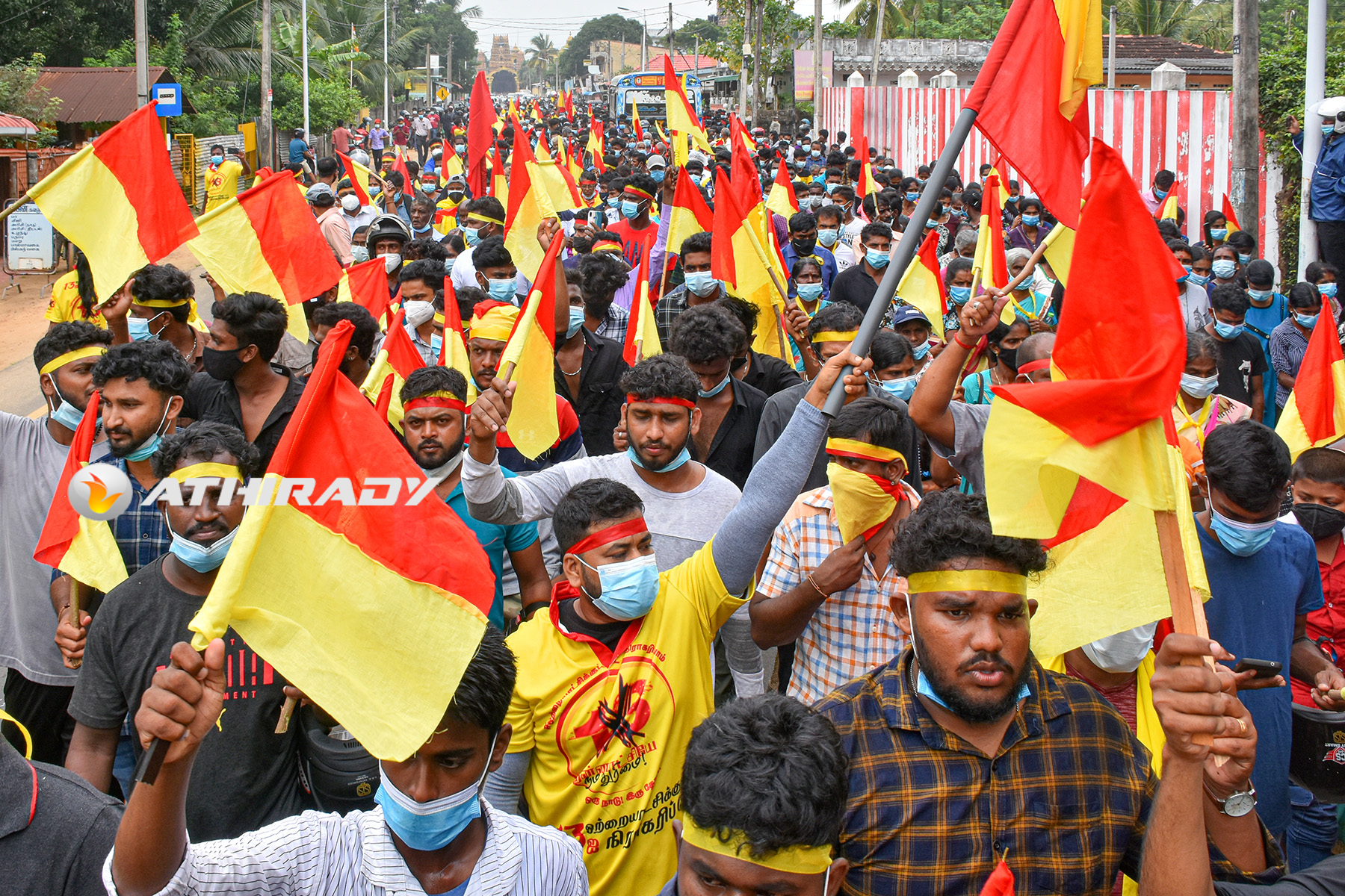 “தமிழர்களின் அரசியல் அபிலாசைகளை 13 ஆம் திருத்தத்திற்குள் முடக்கும் சதி முயற்சியை முறியடிப்போம்” என்ற நோக்கத்துடன்; தமிழ் மக்களினதும், வெகுசன அமைப்புக்களினதும் பங்குபற்றலுடன் நடைபெறும் தமிழ் தேசிய அரசியல் அபிலாசைகளை வெளிப்படுத்தும் போராட்டத்தில், 2022 தை 30 இன்று, கிட்டு பூங்காவில் நாம் அனைவரும் திரண்டுள்ளோம்.